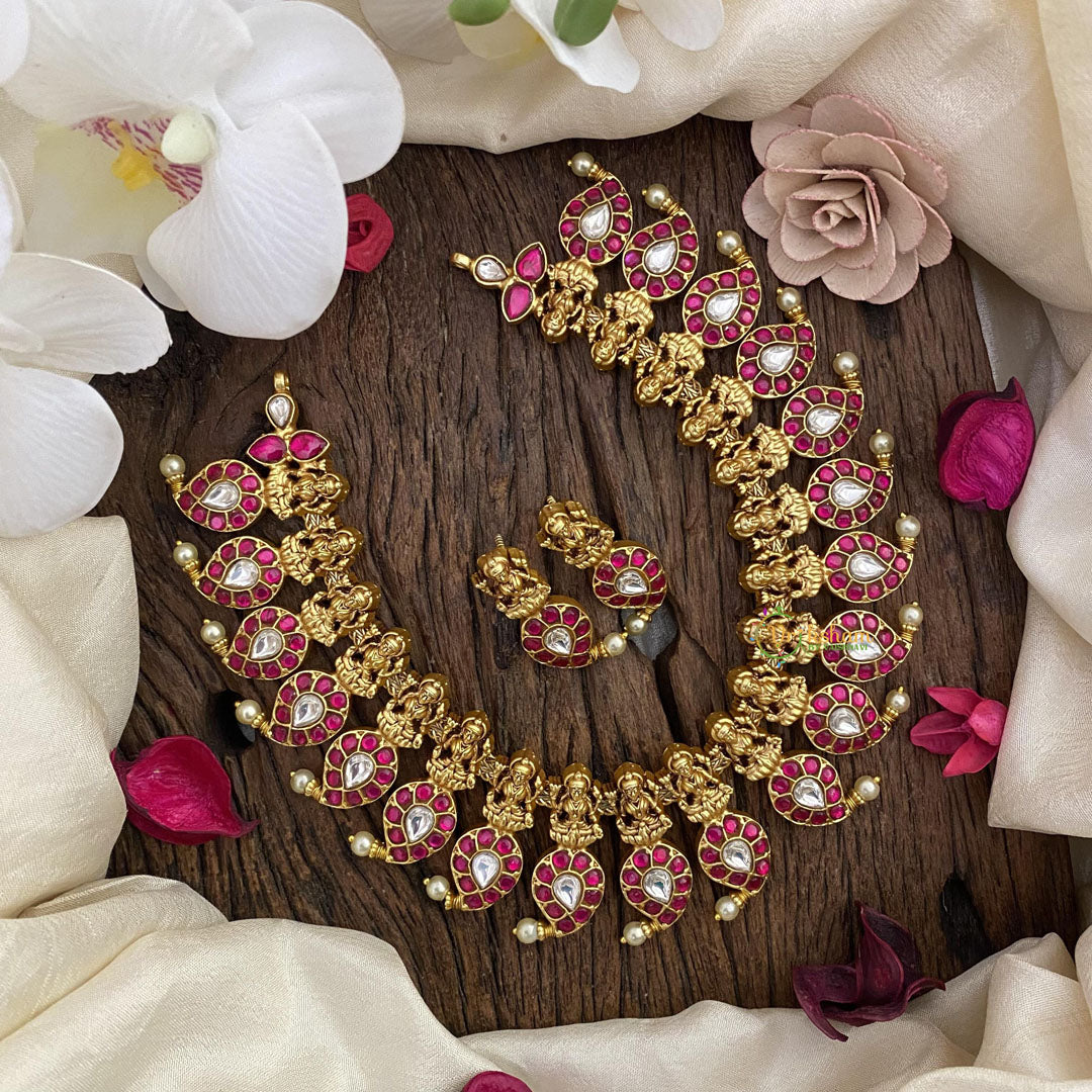 Elevate your style with our Vriksham Exclusive Lakshmi Manga Jadau Kundan Short Neckpiece. Handcrafted with intricate details, this luxurious piece channels timeless elegance and sophistication. Adorn yourself with this exclusive neckpiece for a touch of art and opulence.