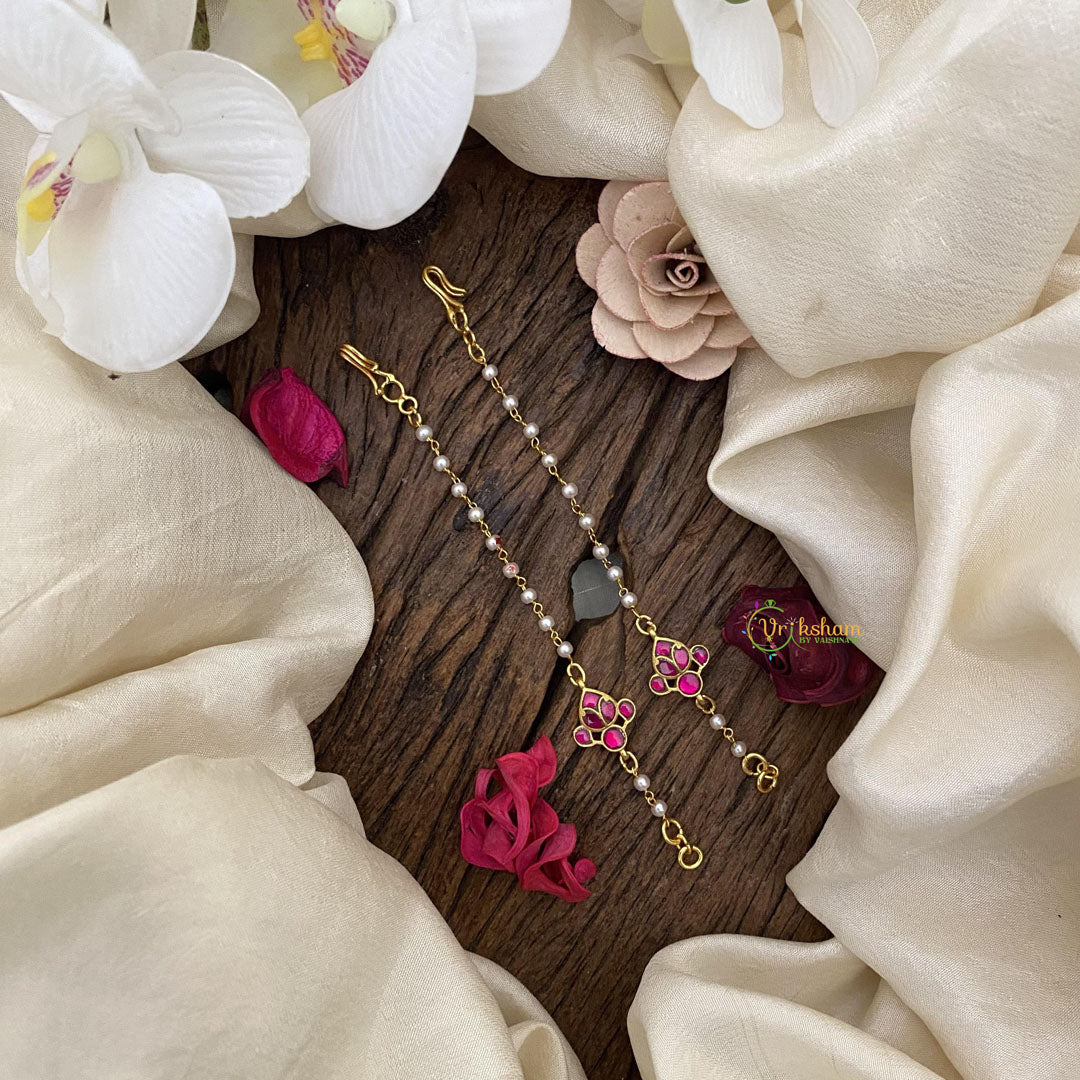 Indulge in luxury with Vriksham's Exclusive Pearl Maatil-Red. Each piece is carefully crafted with exquisite pearls for a sophisticated and exclusive touch. Elevate your style and make a statement with this premium designer piece.