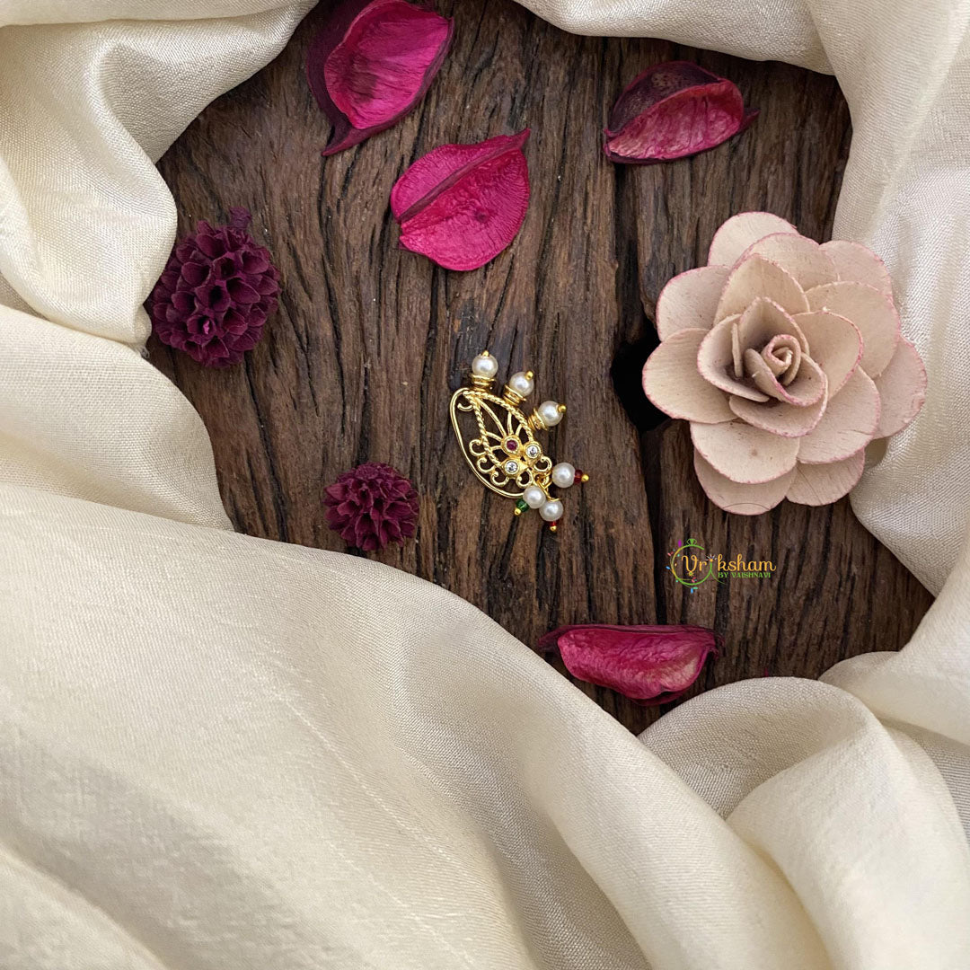 Transform your look with our exclusive AD Stone Nath/Nose Pin. Adorned with sparkling stones, this elegant piece adds a touch of glamour to any ensemble. Make a statement of elegance and radiate luxury.