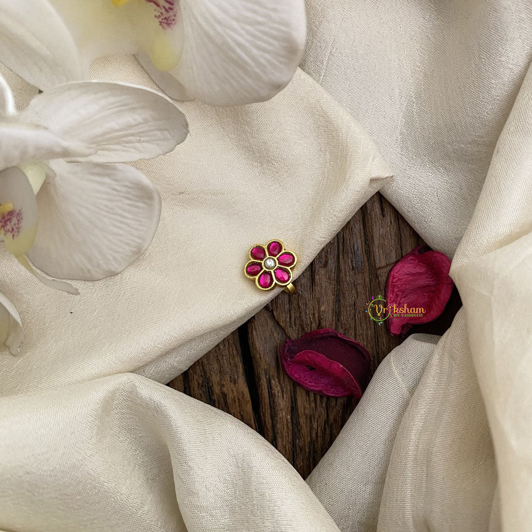 Elevate your style with Vriksham's Exquisite Floral Jadau Kundan Stone Nath/Nose pin. Crafted with intricate floral designs and sparkling Kundan stones, this luxury piece adds a touch of elegance to any look. Perfect for special occasions, it's a must-have for the fashion-conscious woman.