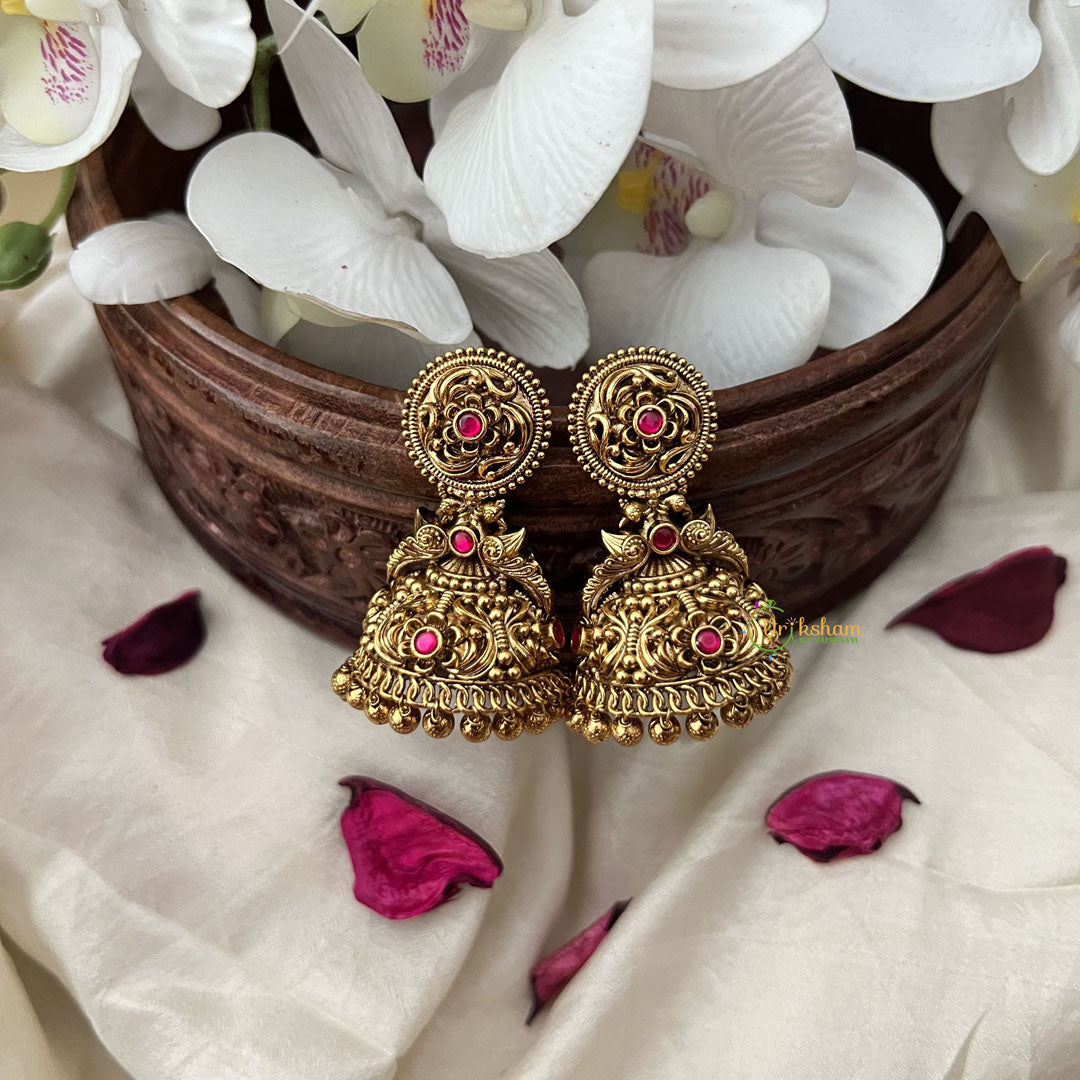 Elevate your style with the Vriksham Exquisite Gold Look Alike Jhumka. This striking piece features a captivating mix of red, and gold beads, adding a touch of sophistication to any outfit. Its gold look-alike finish exudes luxury and exclusivity, making it the perfect addition to your collection.