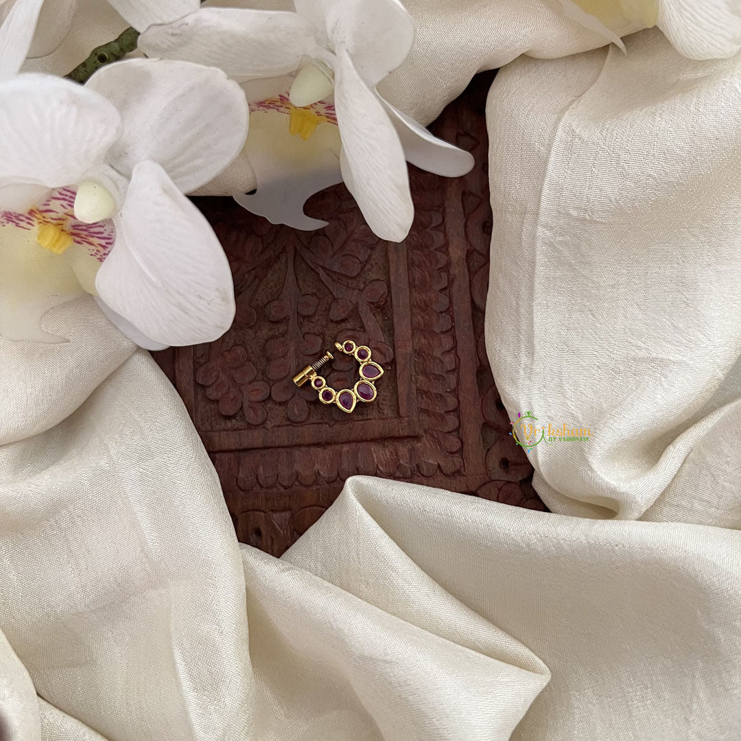 Elevate your style with the Vriksham Exquisite Golden Naths/Nose pin. Made of premium materials, this elegant left nose pin adds a touch of sophistication to any outfit. The intricate design and rich golden color exude luxury and exclusivity. Perfect for adding a subtle yet impactful detail to your look.