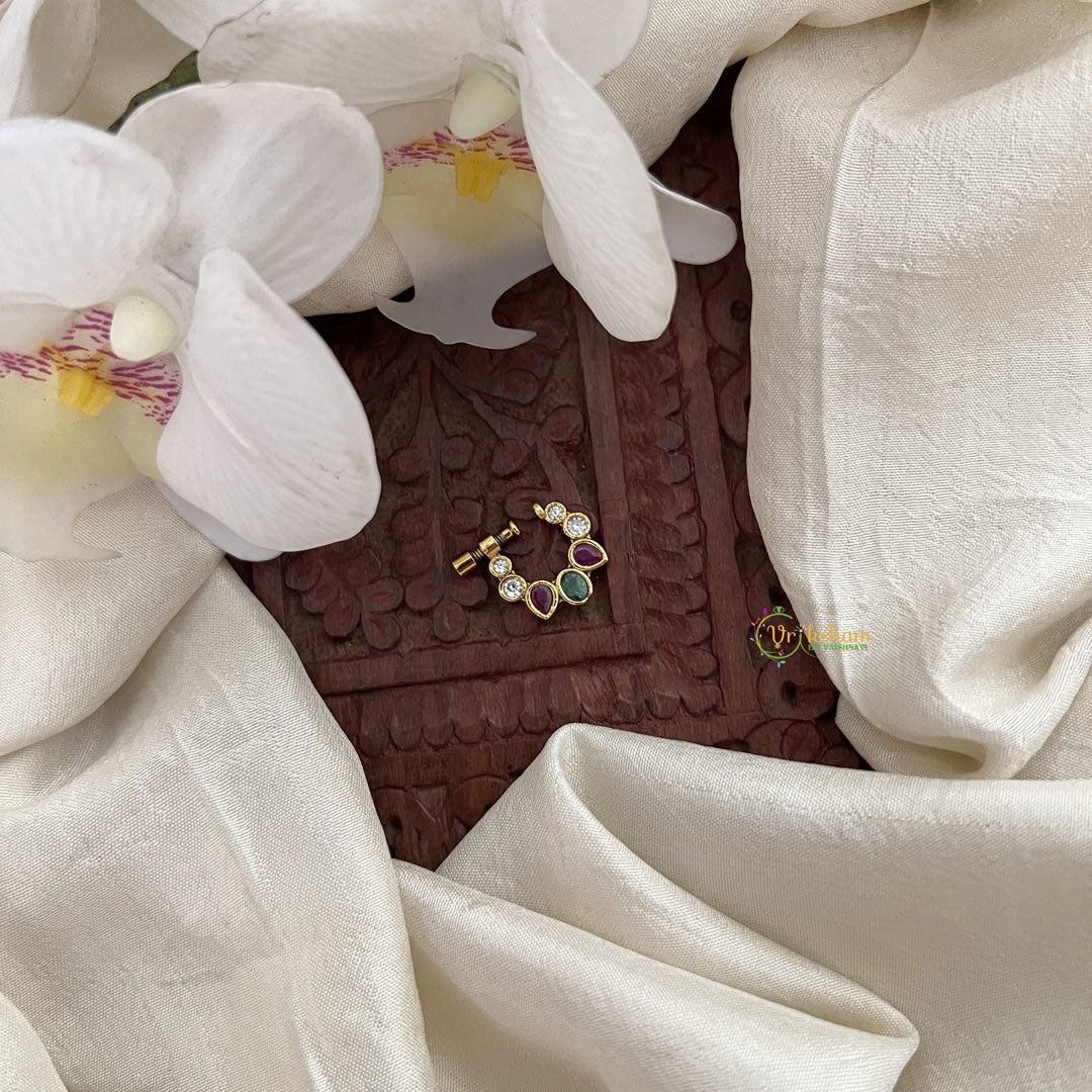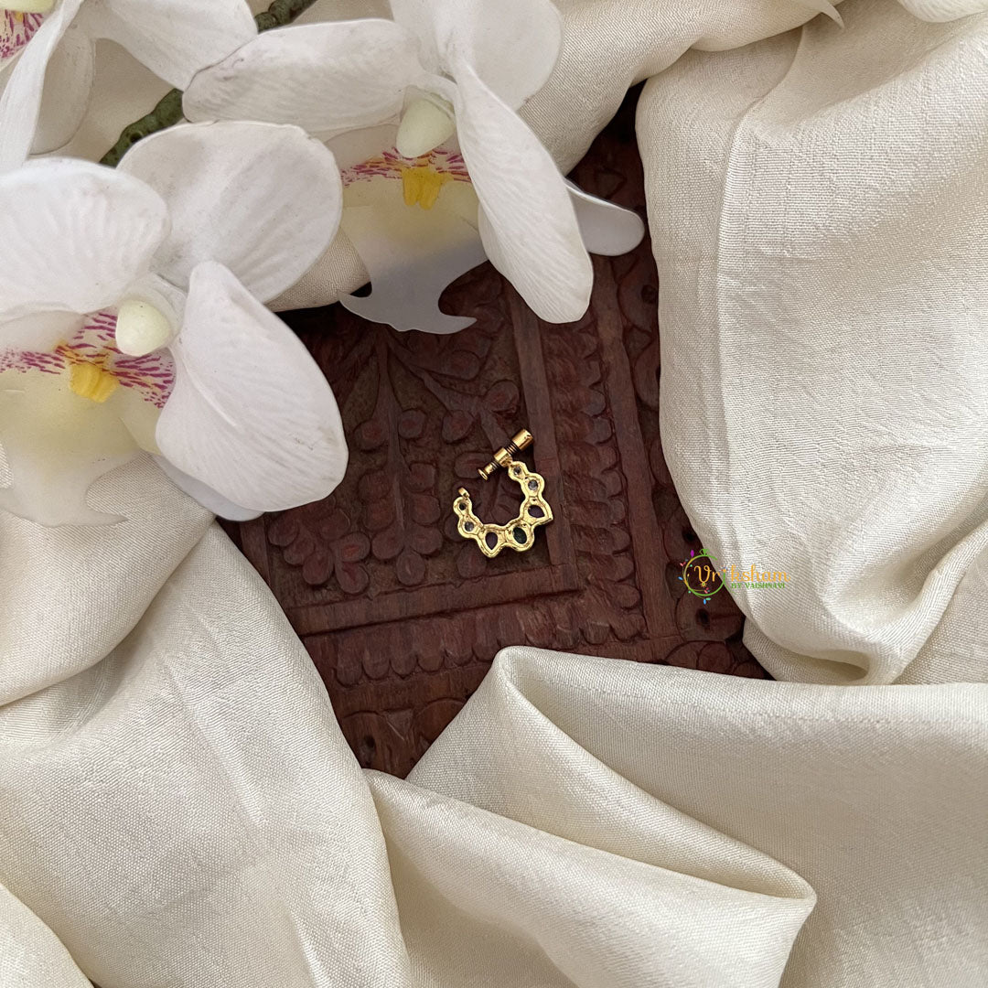 Vriksham Exquisite Golden Naths/Nose pin-Red White & Green-G17884