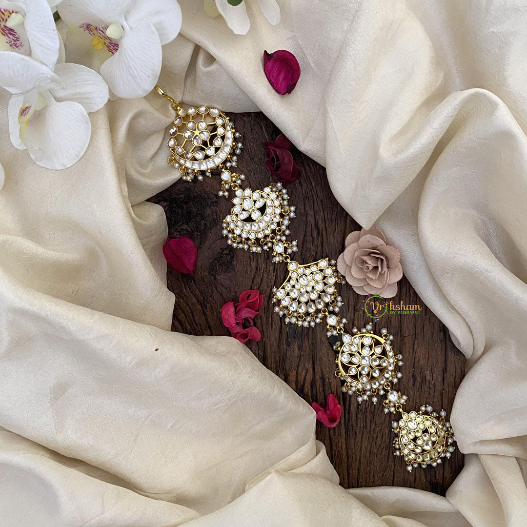 Elevate your style with Vriksham's Exquisite Jadau Kundan Jada Billai-White Pearl-White. Crafted with intricate details and premium materials, this piece exudes luxury and sophistication. Enhance your look with the timeless elegance of this truly exquisite necklace.