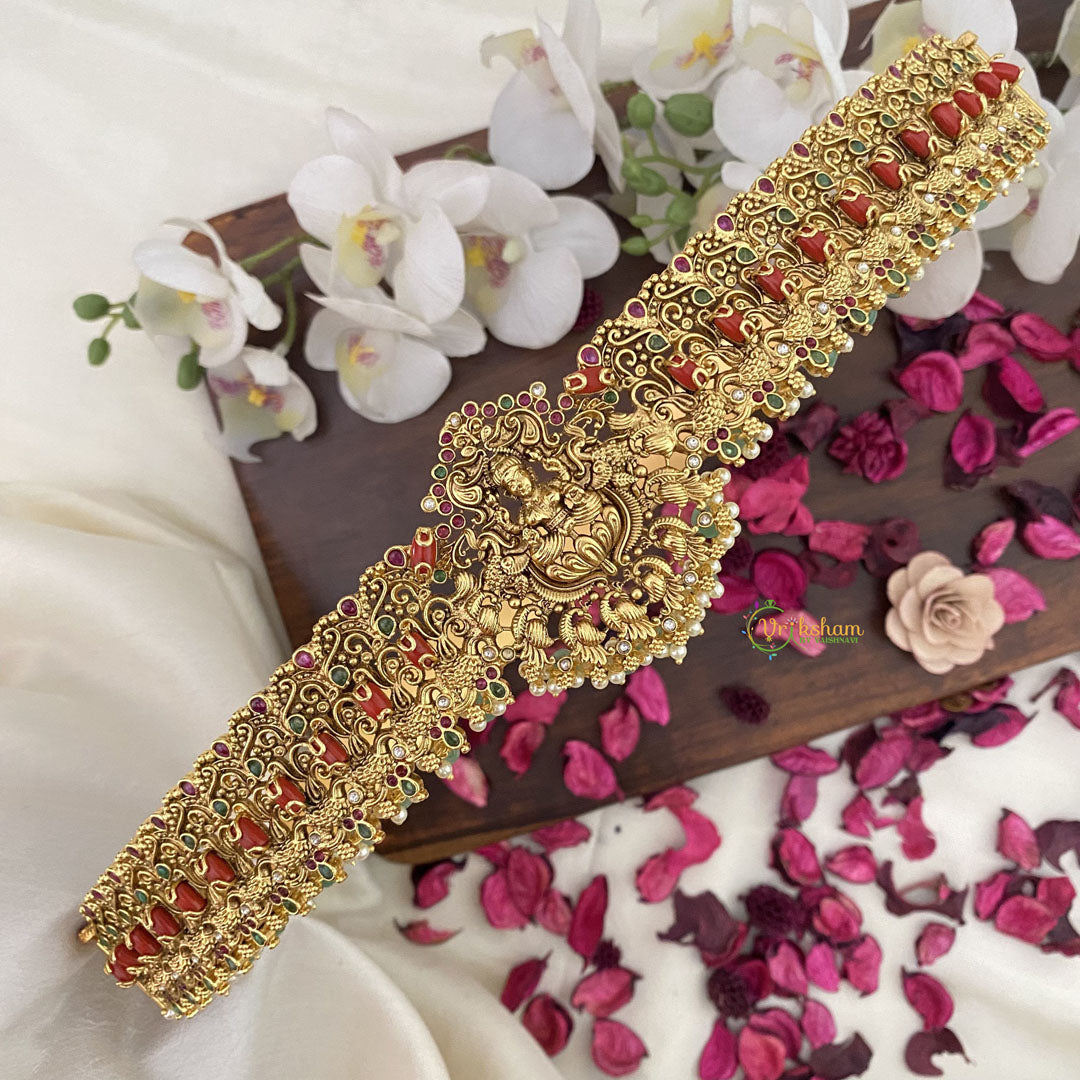 Be the center of attention on your special day with our Vriksham Exquisite Lakshmi Bridal Hip Belt. The stunning aqua green beads, pearls, and coral add a touch of elegance and luxury to your bridal ensemble. Elevate your style and radiate sophistication with this exclusive accessory.