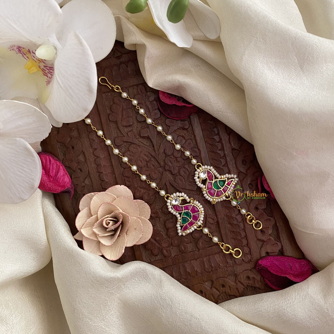 Indulge in elegance with our Vriksham Exquisite Single Strand White Pearl Maatil-Annam. Each pearl is handpicked for its perfect round shape and lustrous shine. The single strand design exudes sophistication and luxury, making it the perfect accessory for any occasion. Elevate your style with the timeless beauty of pearls.