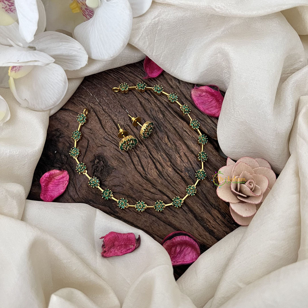 Premium AD Stone Short Neckpiece- premium quality polish and imitation stones neckpiece, comes with matching earrings.