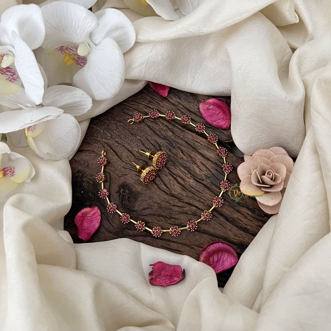 Premium AD Stone Short Neckpiece- premium quality polish and imitation stones neckpiece, comes with matching earrings.