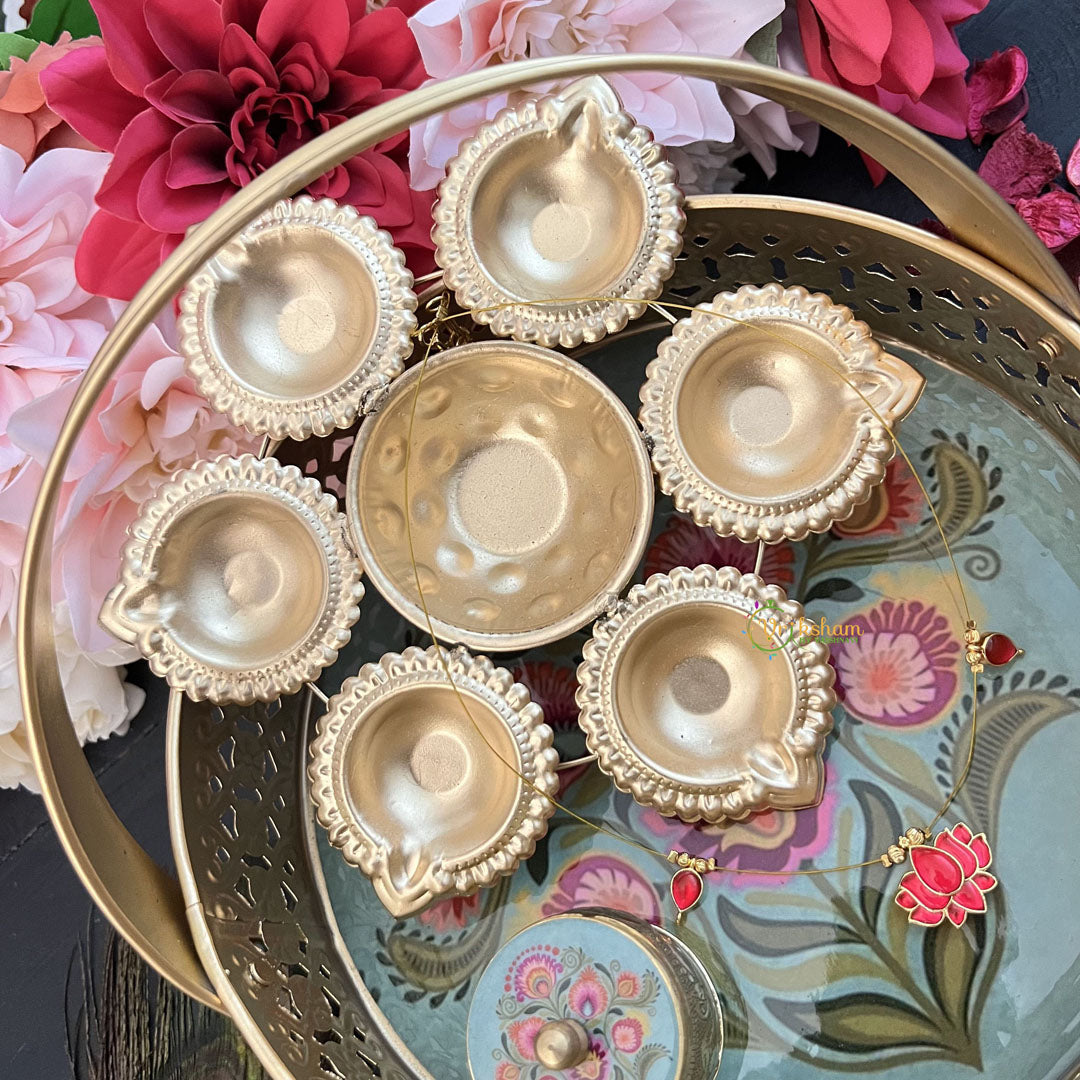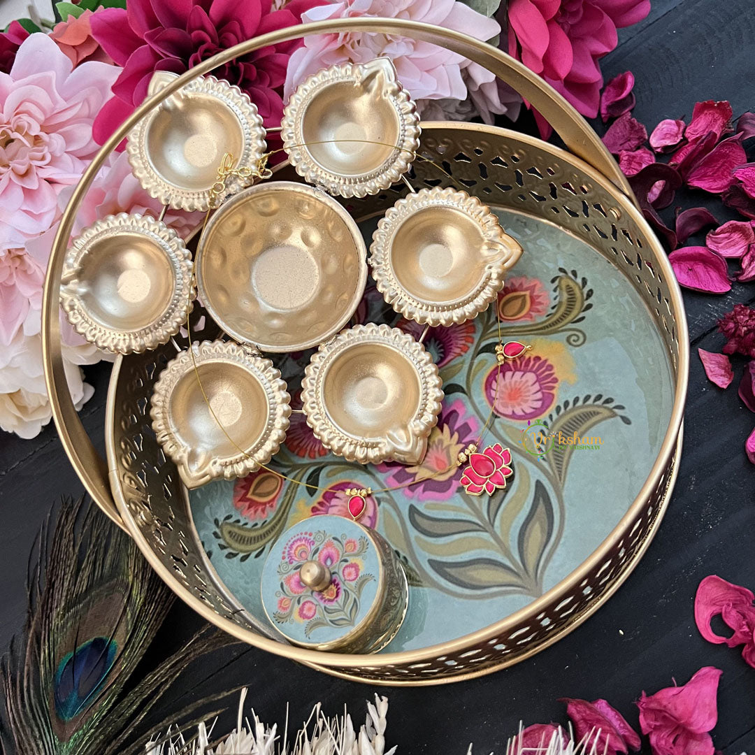 The Vriksham Festival Gift Hamper is a refined collection featuring a traditional diya set, an elegant invisible set, a classic kumkum box, and a beautifully crafted basket. This sophisticated hamper blends cultural heritage with tasteful design, making it an ideal gift to celebrate festive occasions with grace and warmth.
