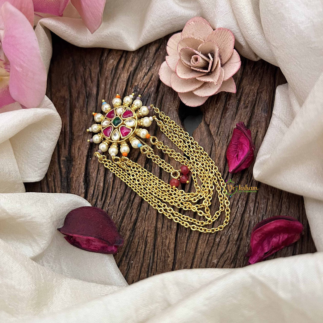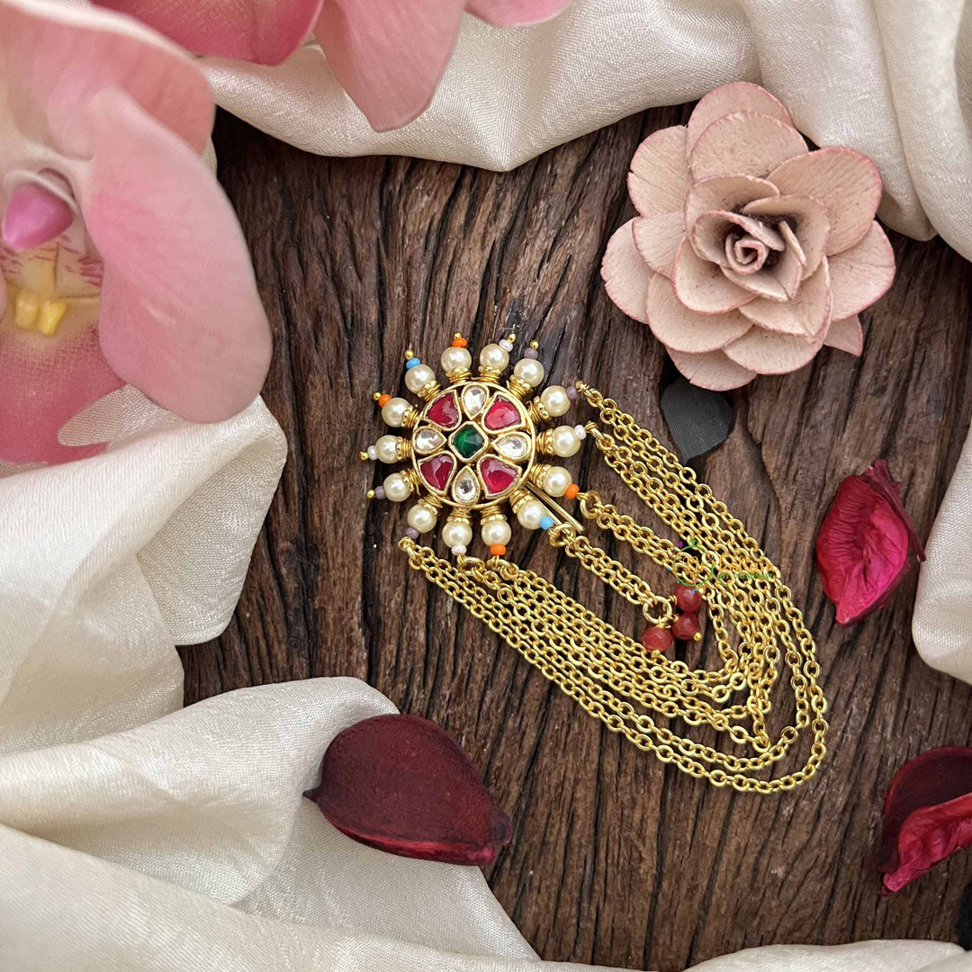 Experience the pinnacle of traditional elegance with this exquisite Jada Billai, featuring a captivating multicolor bead arrangement in an intricate floral design. The piece is distinguished by its luxurious gold chain paired with rich red beads, creating a striking contrast that exudes opulence and refinement. Each bead is thoughtfully positioned to showcase masterful artisanal work, making this an exceptional choice for weddings, festivals, and momentous celebrations. The harmonious interplay of vibrant hues and precious metal accents elevates your traditional attire with understated grandeur. A testament to heritage craftsmanship, this Jada Billai is designed for those who seek authentic beauty and timeless sophistication in every detail.