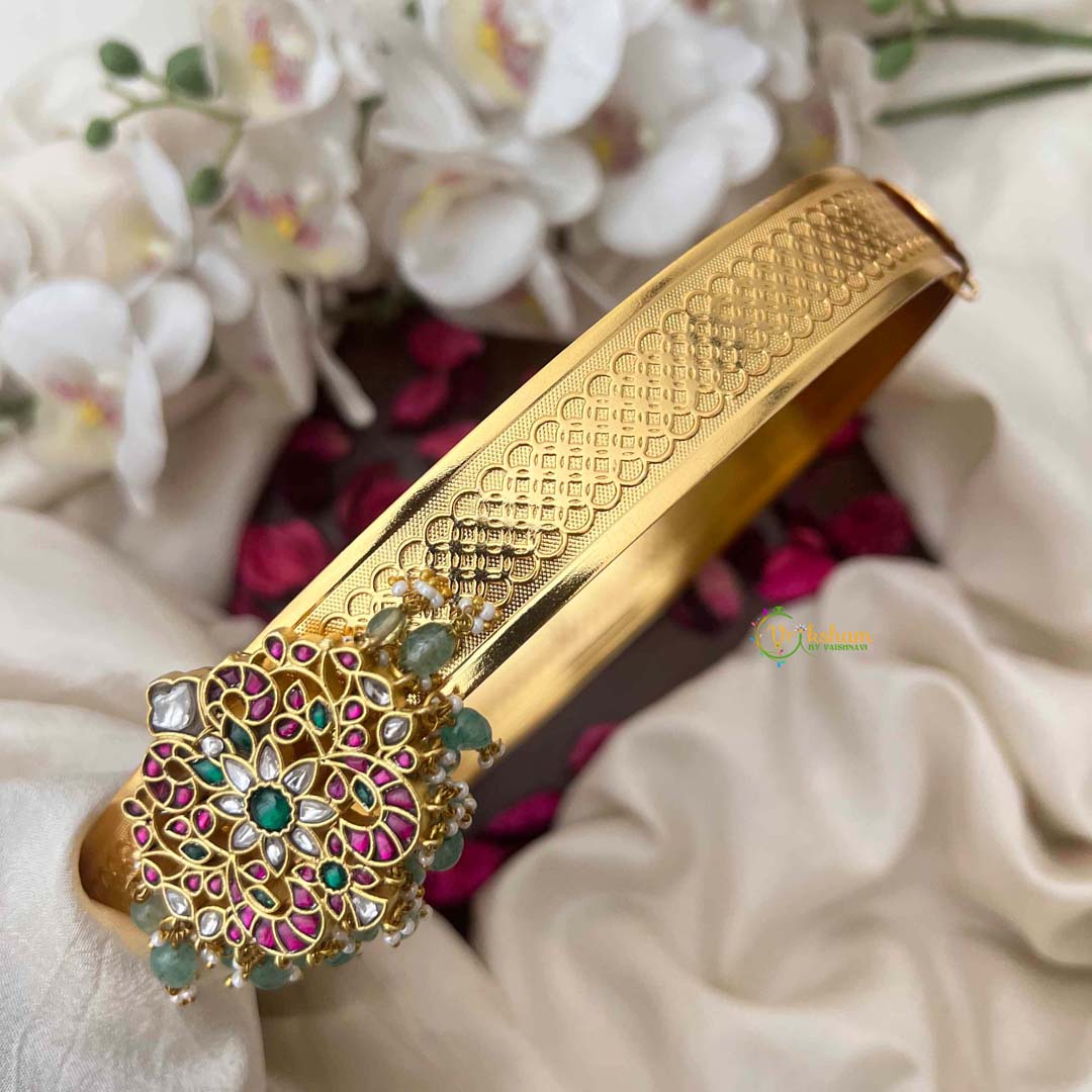 Discover botanical beauty with this exquisite floral design pendant, a celebration of nature's most delicate artistry rendered in refined craftsmanship. The pendant features intricately carved botanical motifs that evoke timeless elegance and natural grace, perfect for those who appreciate organic aesthetics. Paired with a minimalist plain hipbelt adorned with serene aqua green beads, this collection creates a cohesive ensemble that seamlessly transitions from festive occasions to everyday sophistication. The cool aqua tones complement the intricate floral detailing, creating visual harmony and understated luxury. Meticulously designed for the discerning wearer, this piece captures the essence of botanical splendor while maintaining an air of refined restraint and contemporary sensibility.