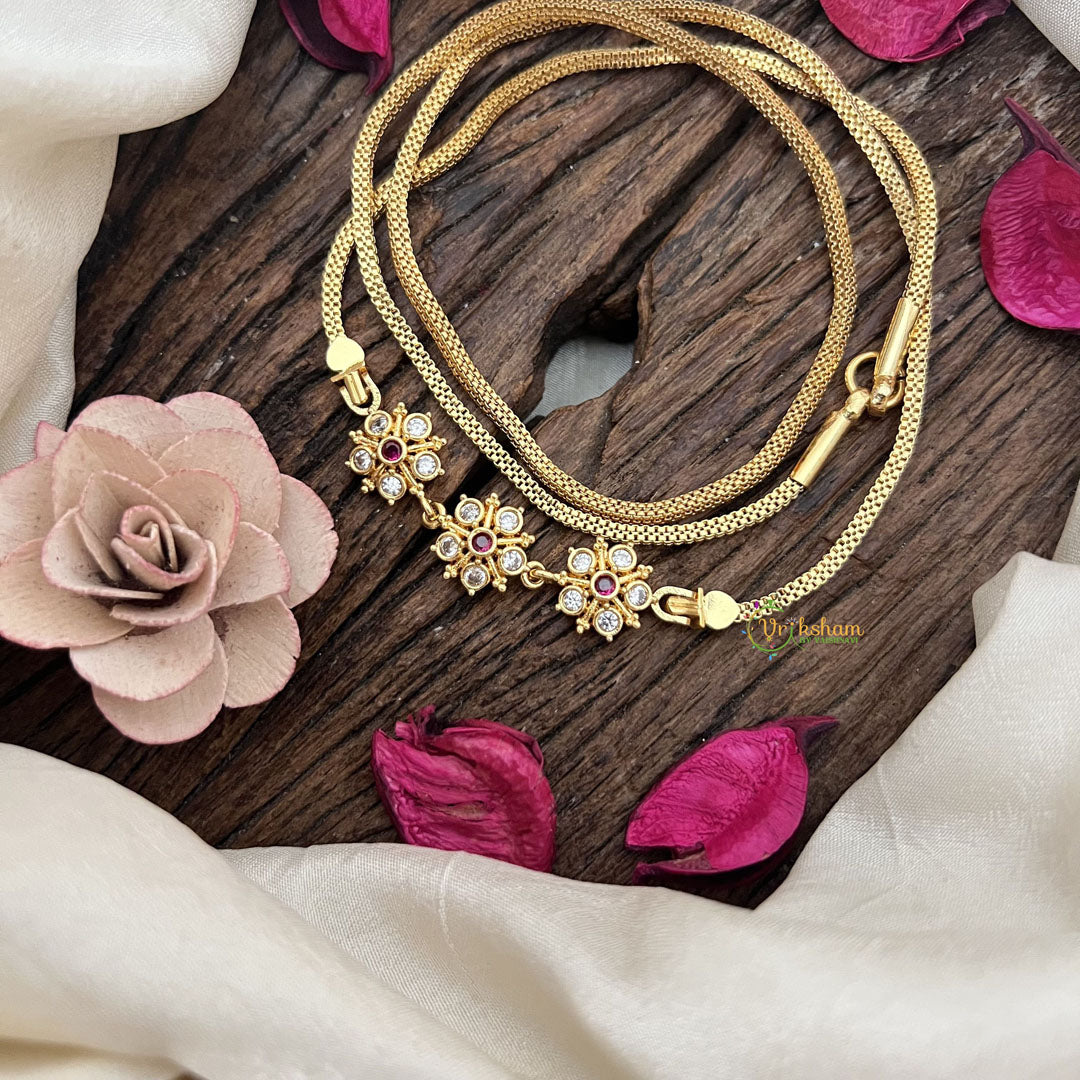 Vriksham Floral Engraved Moggapu Gold Chain-White Red-G19574
