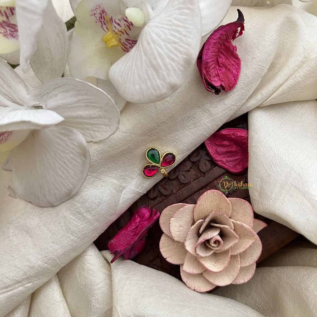 Elevate your traditional ensemble with the Vriksham Floral Jadau Kundan Nath in striking red and green hues. Expertly crafted, this exquisite piece blends intricate floral motifs with the timeless elegance of Jadau and Kundan artistry. Its vibrant colors and refined design make it a perfect accessory for special occasions, adding a touch of sophistication and cultural richness to your look.