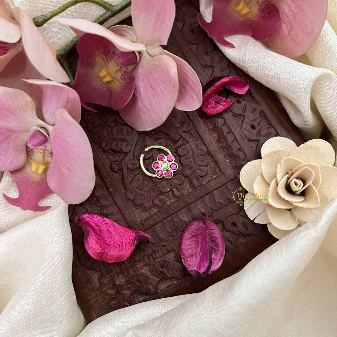 Vriksham Floral Kundan Jadau Septum Ring-Red White-J3957