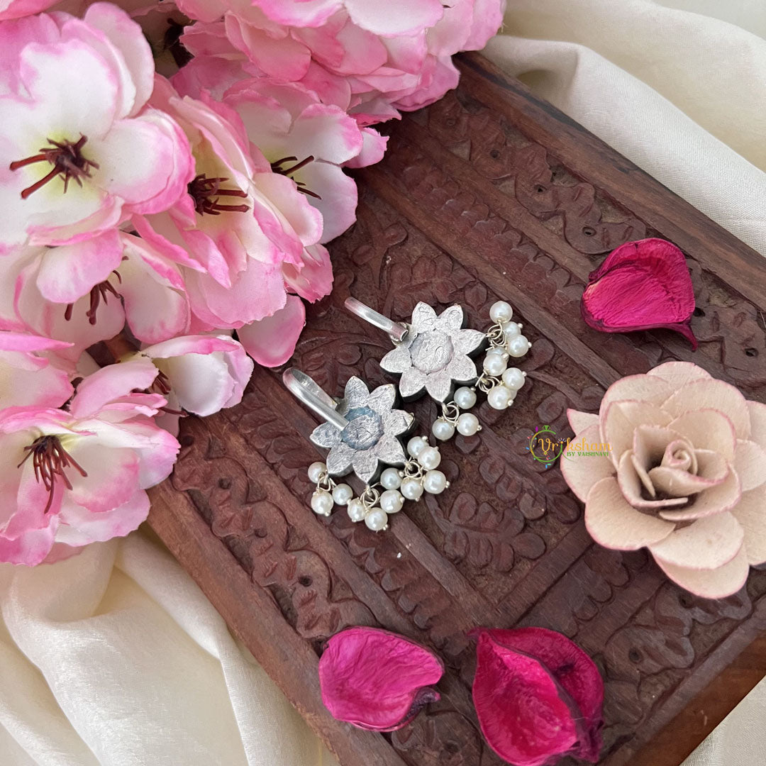 Indulge in cultural sophistication with our Floral Maharashtrian Style Press Bugadi. This refined ear ornament showcases an elegant floral motif enhanced by the striking contrast of passionate blue and pristine white beads.