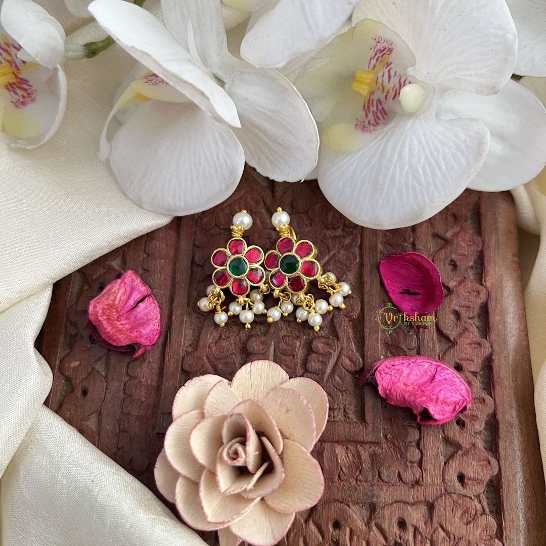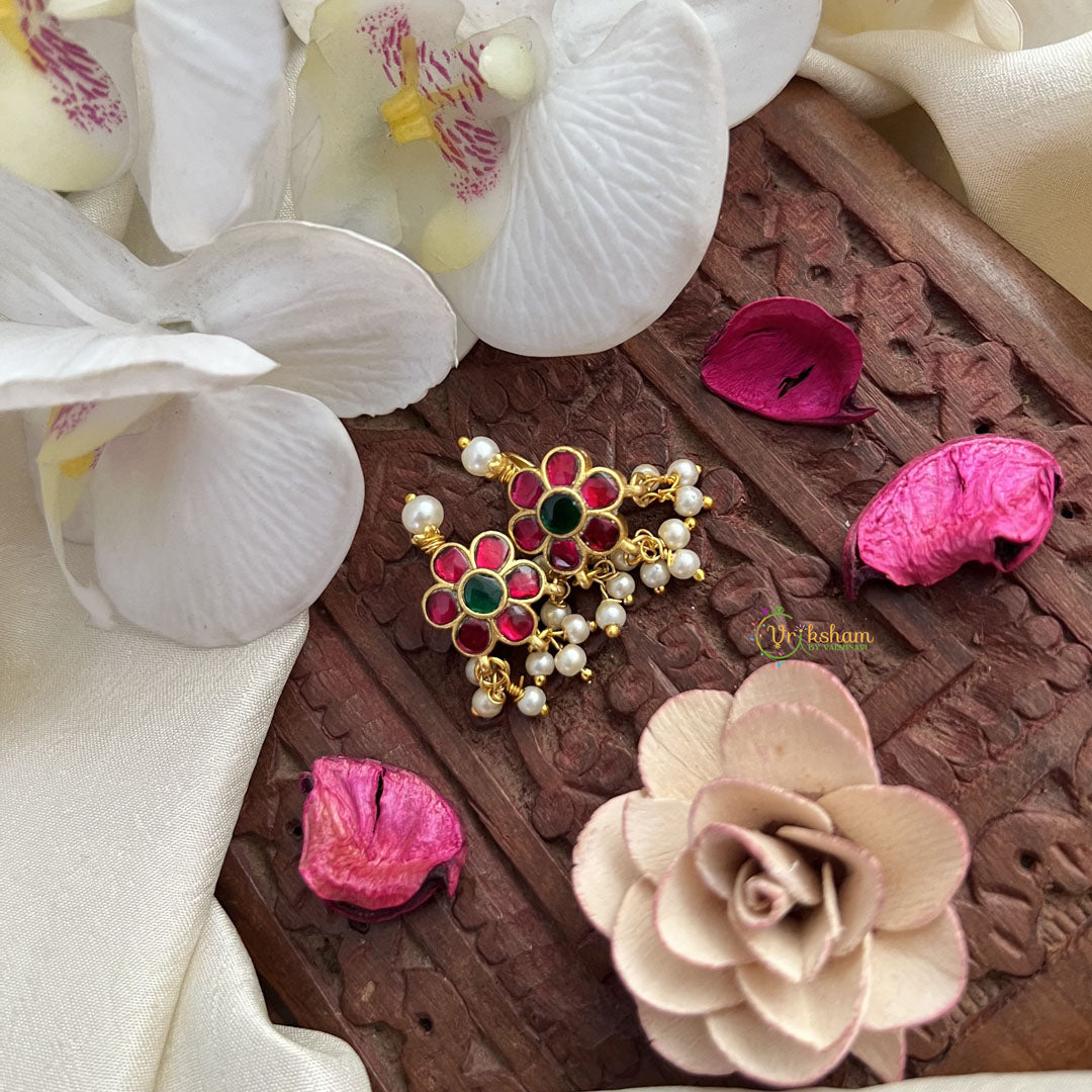 Introducing Vriksham Floral Maharashtrian Style Press Bugadi, a luxurious addition to any outfit. Hand-crafted with intricate floral designs in green and red, adorned with pearls for an elegant touch. Elevate your style and embrace the beauty and tradition of Maharashtra with this Bugadi.