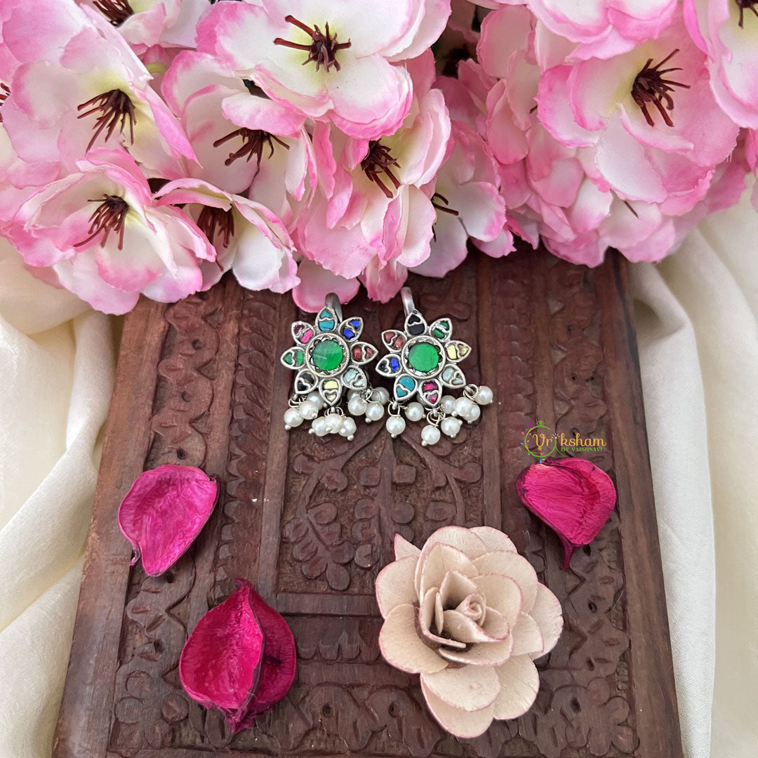 Indulge in cultural sophistication with our Floral Maharashtrian Style Press Bugadi. This refined ear ornament showcases an elegant floral motif enhanced by the striking contrast of passionate multicolor and pristine white beads.