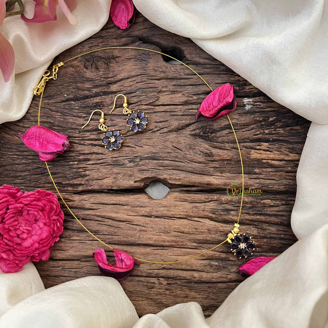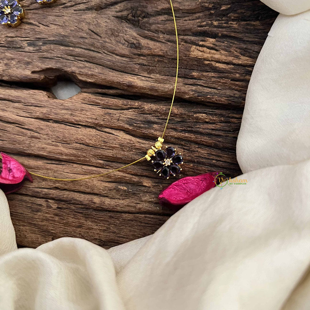 Vriksham Floral Minakari Work Pendant Invisible Chain-Purple-G20584