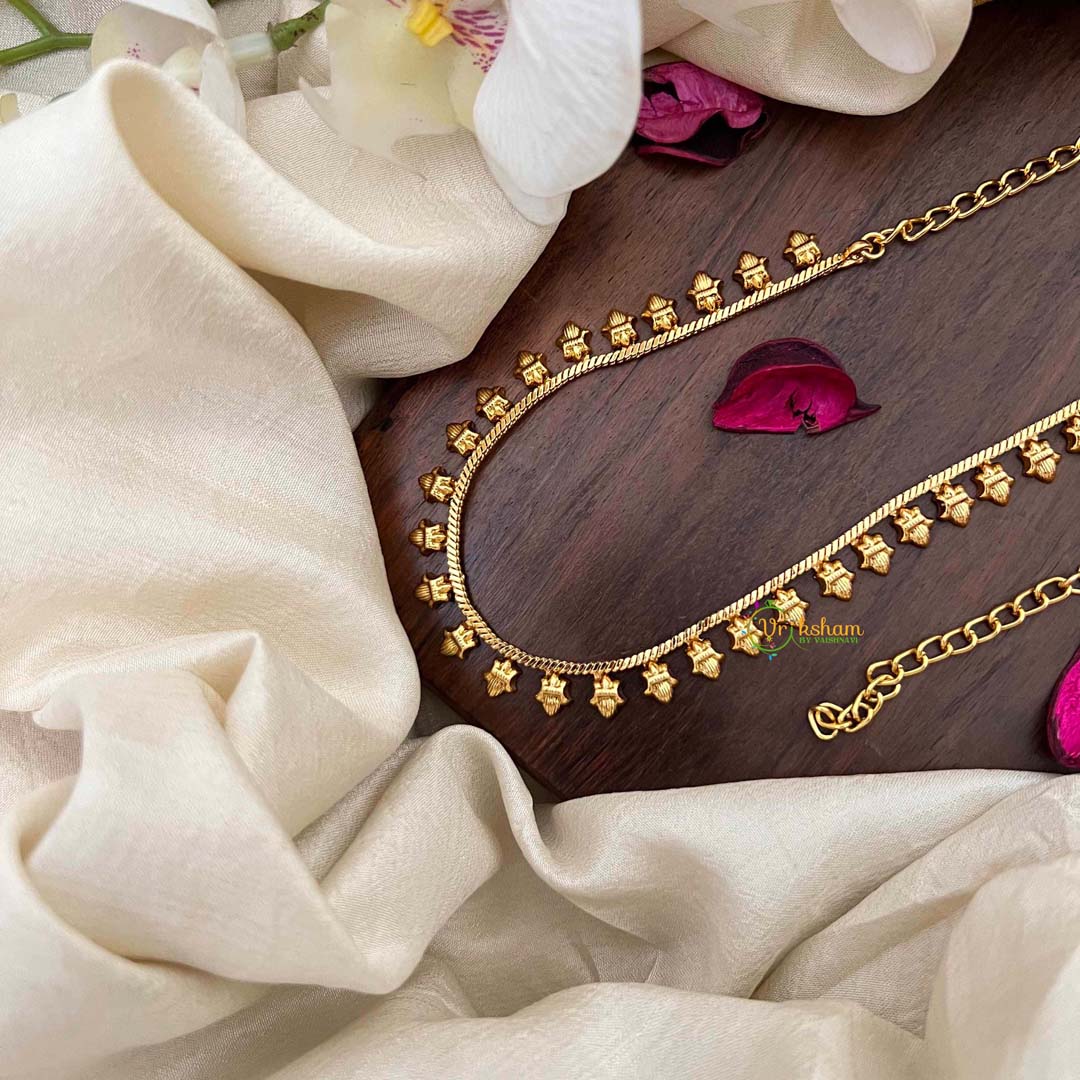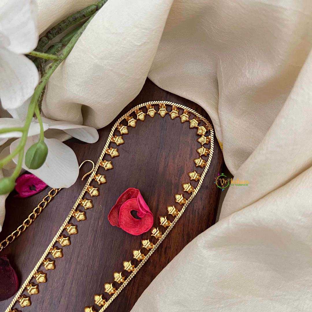 Adorn yourself with timeless elegance through this stunning hip chain, showcasing delicate floral motifs rendered in intricate cutwork. The lustrous gold finish enhances the botanical design, creating a luminous accessory that complements traditional and contemporary styles alike. Perfect for weddings, festivals, and formal occasions, this piece radiates refined beauty and cultural grace. The carefully crafted floral patterns add dimension and movement, making it an ideal choice for those who appreciate artisanal craftsmanship and sophisticated ornamentation.
