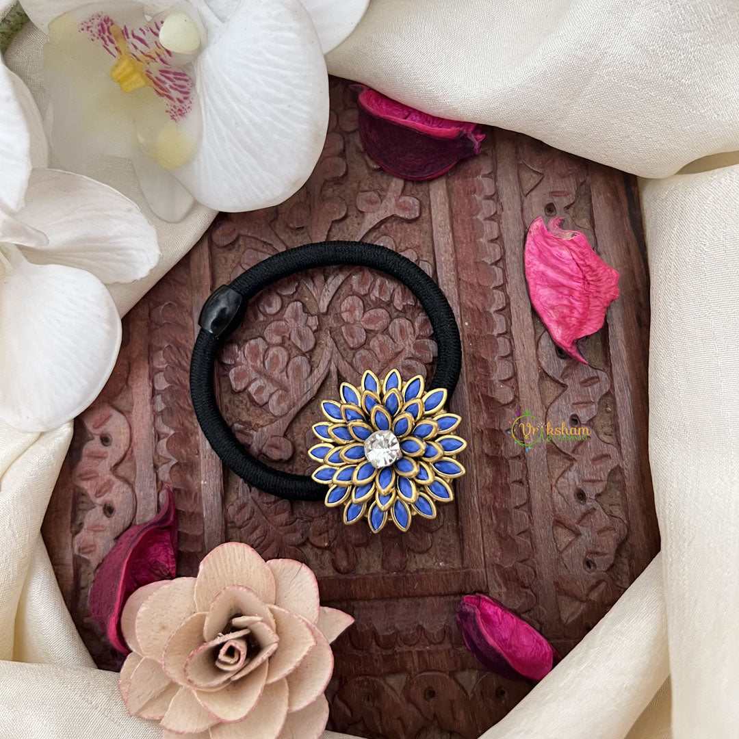 Elevate your everyday style with our Vriksham floral pendant rubber band in pretty Sky Blue. The intricate floral design adds a touch of sophistication to your hair, while the durable rubber band ensures a secure hold. Let this elegant accessory be the highlight of your outfit.