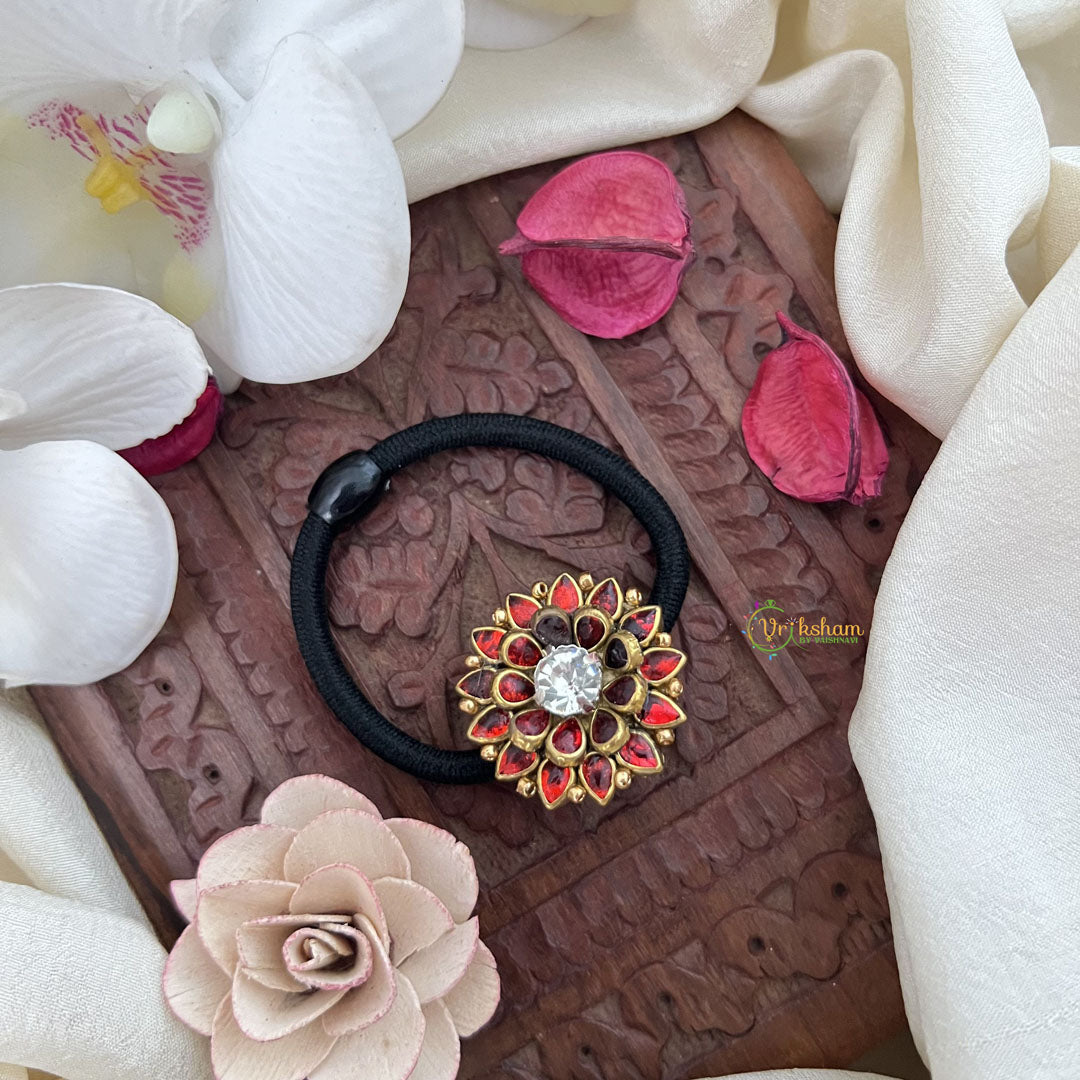 Elevate your style with the Vriksham Floral Tilak Shape Pendant Rubber Band in vibrant red. Perfect for adding a pop of color to any outfit, this elegant band features a unique floral tilak shape pendant, showcasing your sophisticated taste. Crafted with premium materials for a luxurious look and feel.