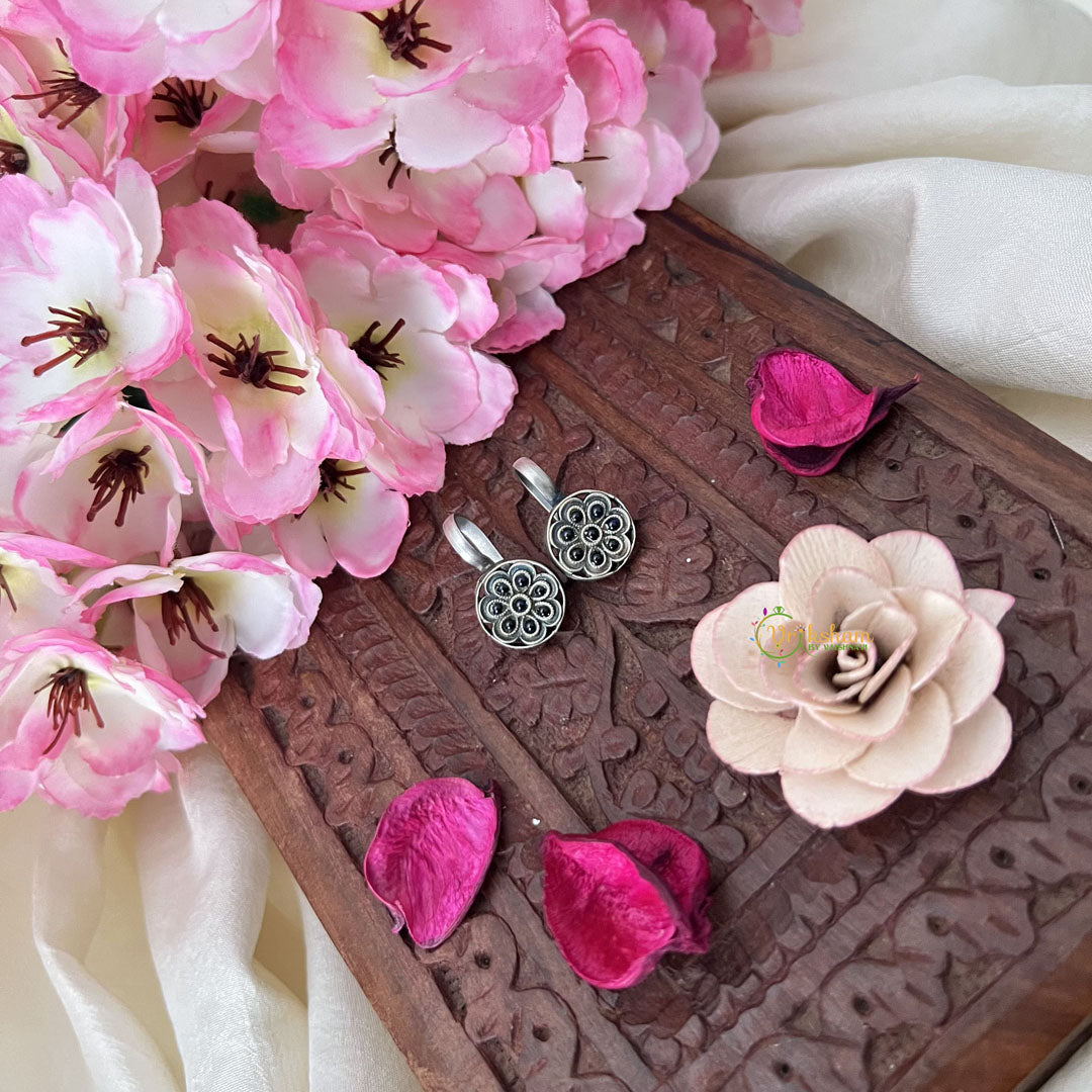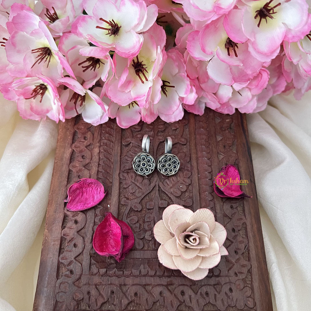 Exquisitely crafted Maharashtrian-style Press Bugadi earrings featuring delicate flower designs with blue accents and elegant white beads. These traditional ornaments blend cultural heritage with contemporary sophistication, perfect for enhancing both festive attire and everyday ethnic ensembles.