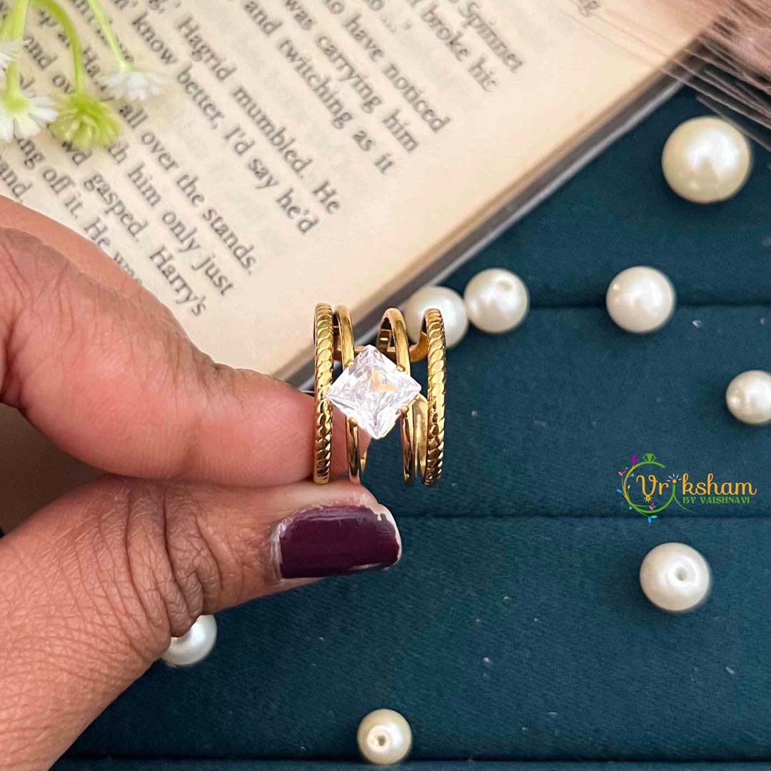 Showcase contemporary elegance with this geometric princess-cut triple row statement ring that merges modern design with timeless sparkle. The precisely cut princess stones are arranged in three striking rows, creating a bold architectural statement that catches light from every angle. The geometric precision of the design delivers clean lines and visual impact, while anti-tarnish protection ensures lasting radiance. Perfect for those who appreciate jewelry that balances geometric sophistication with brilliant sparkle, this ring elevates any occasion with refined confidence and distinctive style.