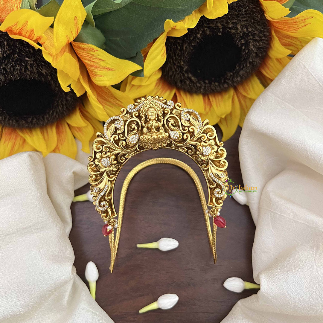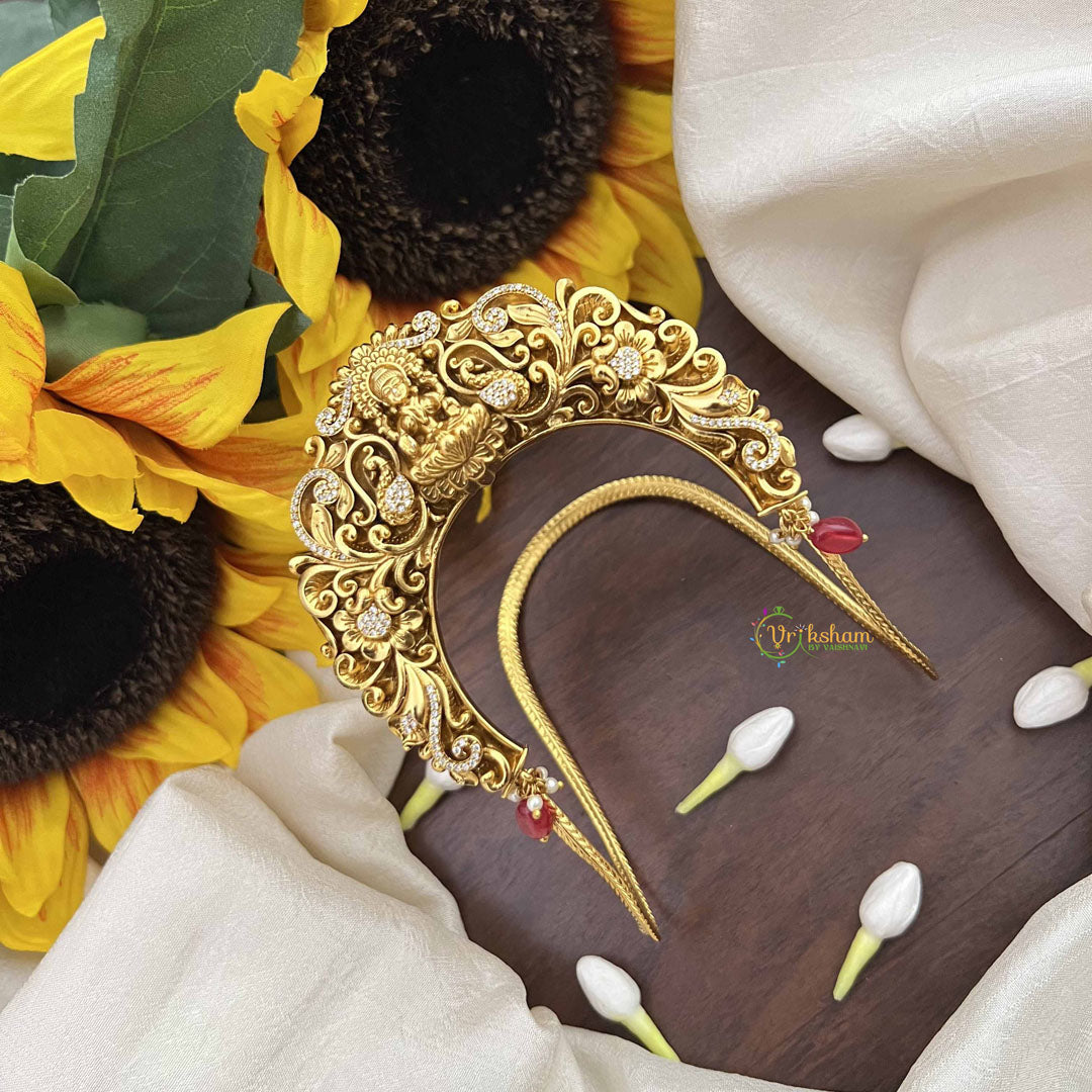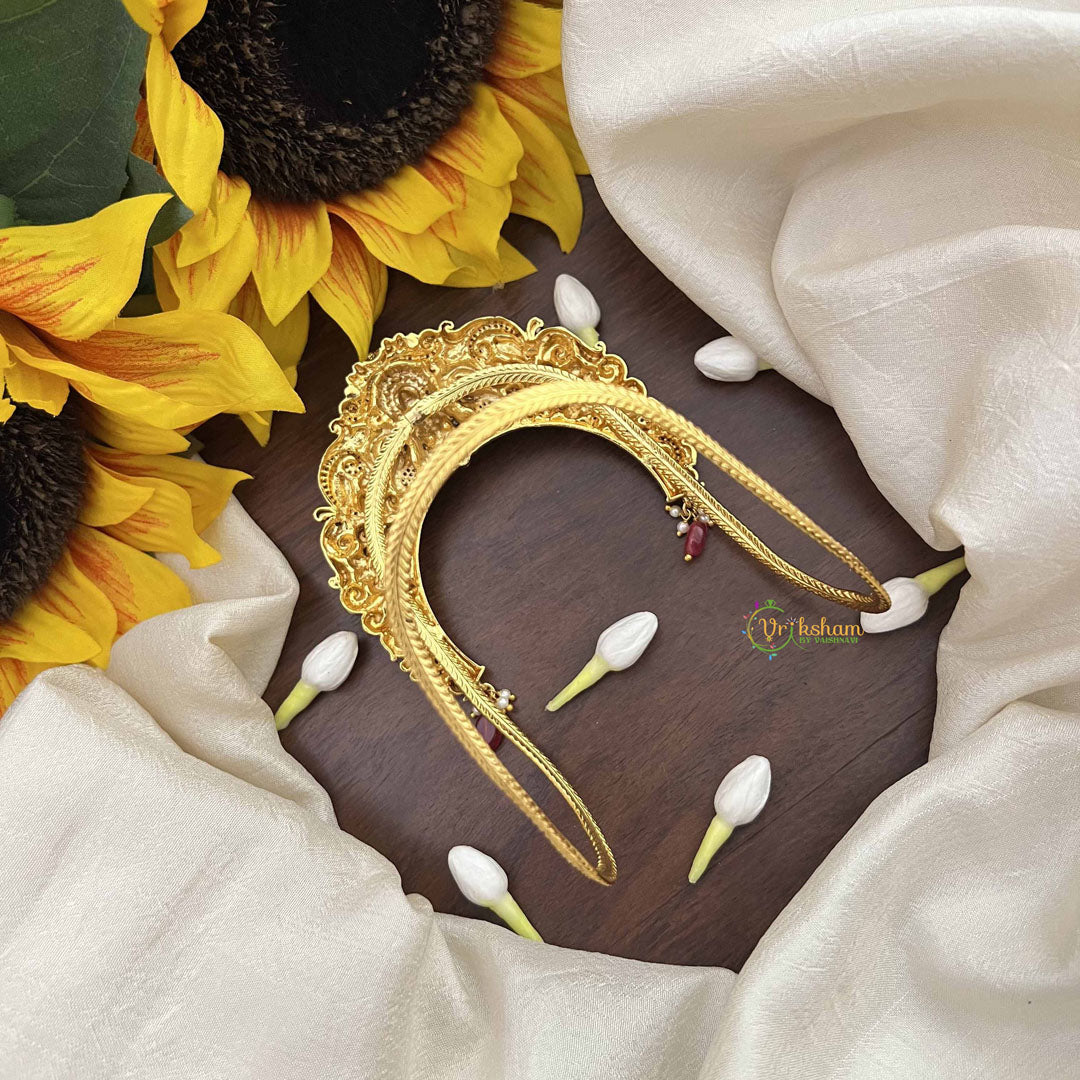 Discover divine elegance with this Gold AD Stone Lakshmi Peacock Motif Vangi Armlet, a harmonious fusion of prosperity and beauty. Crafted from premium AD stone with gold detailing, this piece seamlessly blends the graceful peacock with the benevolent presence of Goddess Lakshmi, creating a powerful symbol of wealth and aesthetic refinement. The striking red beads add a vibrant, energetic dimension that evokes passion and auspiciousness, while complementing the golden elements beautifully. This sophisticated armlet honors the goddess of abundance while celebrating the peacock's legendary elegance and spiritual significance. Perfect for those seeking to infuse their spiritual practice with luxurious style, this piece transitions effortlessly from everyday devotion to special occasions, making it an essential addition to your curated jewelry collection.