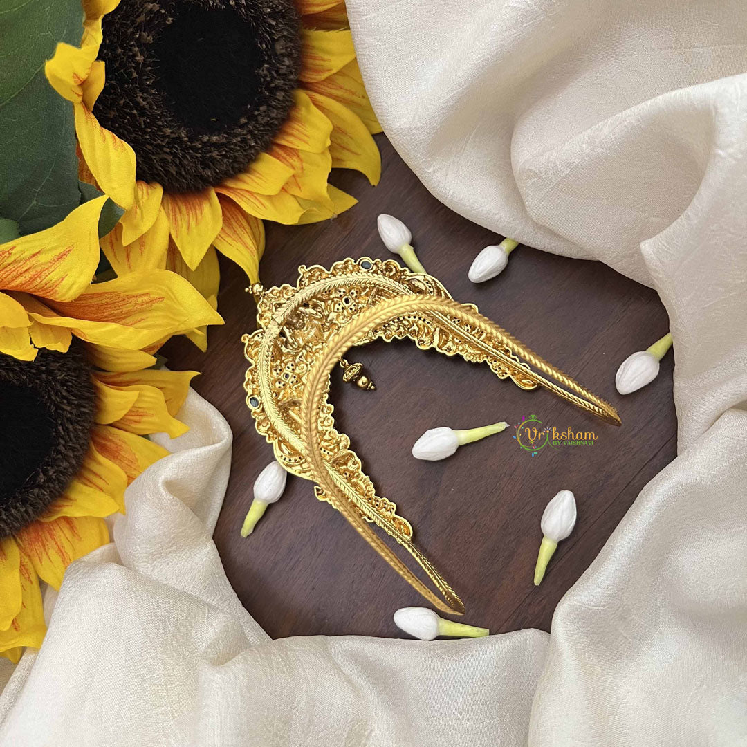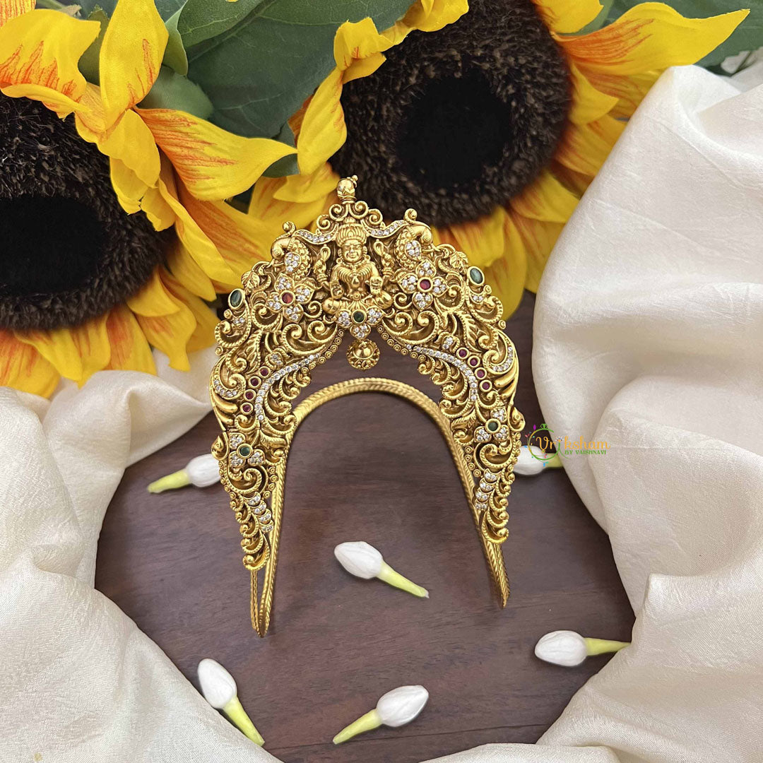 Embrace prosperity through this Gold Alike Nakshi Lakshmi Vangi Temple Armlet, a masterpiece of traditional temple jewelry artistry. The exquisite nakshi detailing showcases the benevolent presence of Goddess Lakshmi, whose blessings of wealth, abundance, and auspiciousness are revered across generations. Crafted in warm gold-alike finish, this armlet authentically captures the ornamental elegance characteristic of sacred temple designs. Each intricate element reflects devotional reverence and meticulous craftsmanship, making it a powerful spiritual accessory for daily practice or ceremonial occasions. This sophisticated piece honors the goddess of prosperity while serving as a tangible reminder of divine grace and abundance. Ideal for those seeking to strengthen their connection with Lakshmi's blessings, this temple armlet seamlessly blends spiritual significance with refined aesthetic appeal, making it an invaluable treasure in any devoted jewelry collection.
