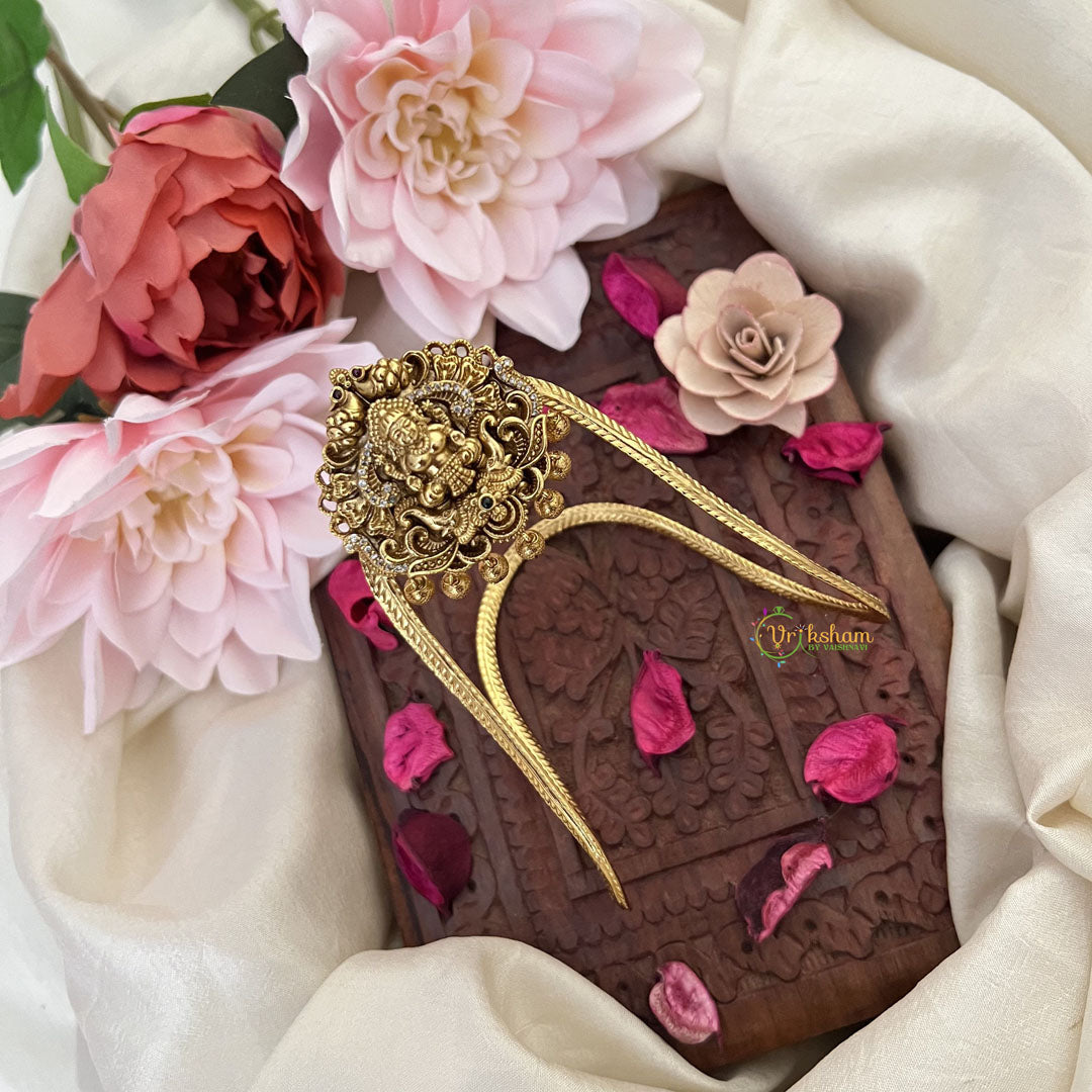 Indulge in luxury with our Vriksham Gold Elephant Lakshmi Vangi / Armlets-Gold Beads. Crafted with intricate detailing, these armlets feature a stunning gold elephant and Lakshmi motif for a touch of elegance and prosperity. Adorn yourself with these armlets and elevate any ensemble to an exclusive level.
