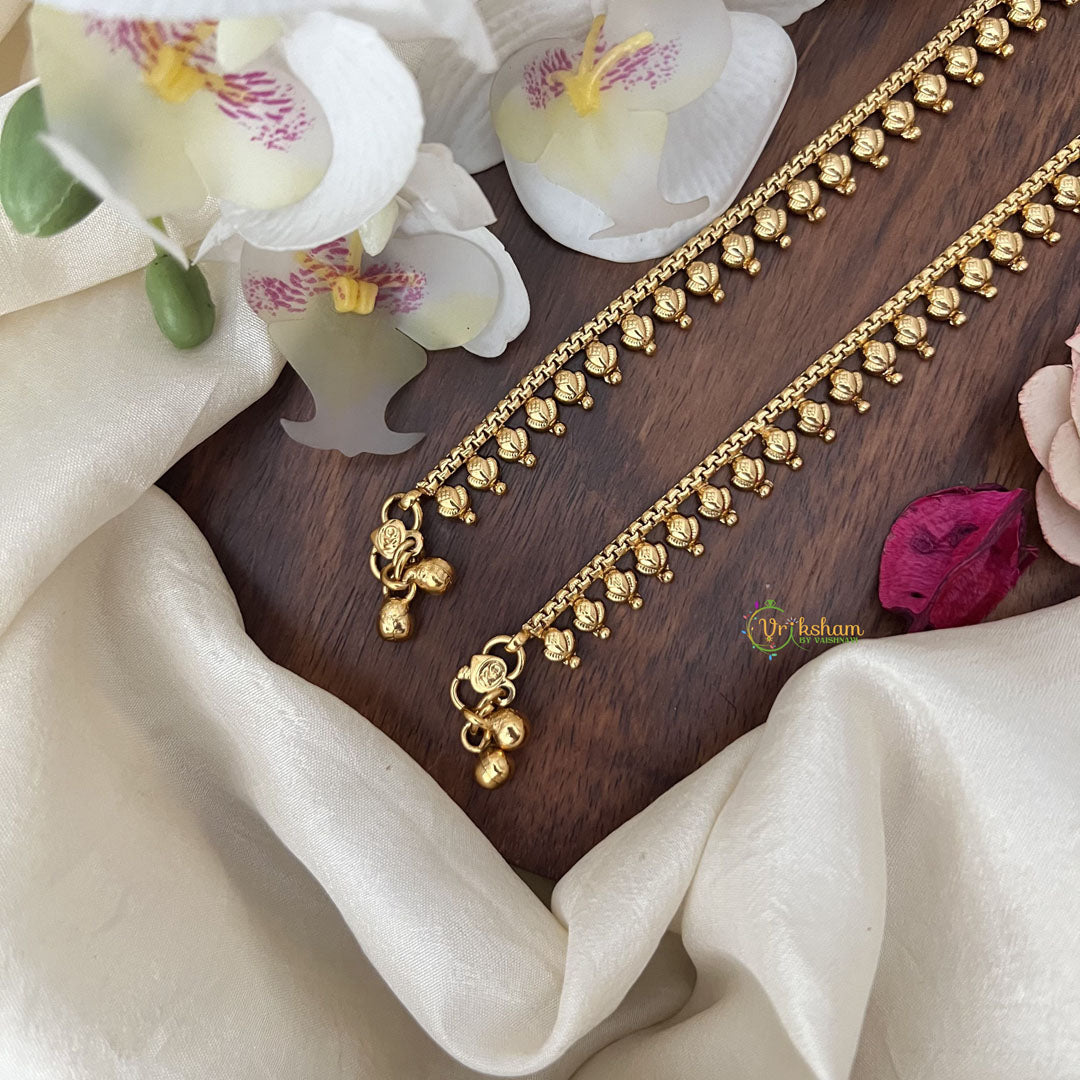 Complete your bridal look with the Vriksham Gold Look Alike Antique Bridal Anklets. The intricate design and gold-like finish add a touch of luxury to your ensemble. These anklets are the perfect accessory to elevate your bridal outfit and make you feel like a true queen on your special day.