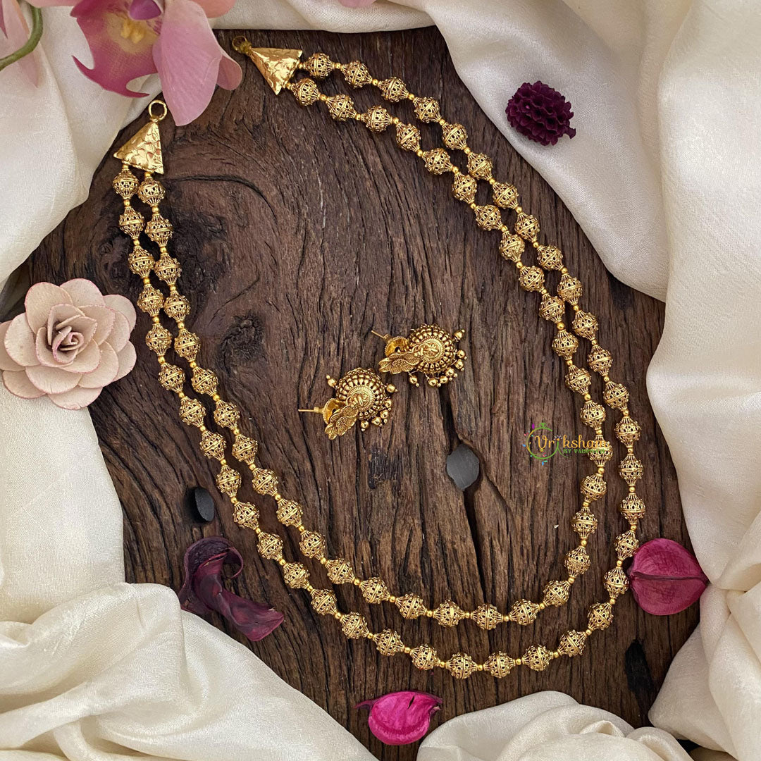 Indulge in luxury with our Gold Look Alike Beaded Malai, featuring two layers for an elegantly layered look. The intricate beadwork adds a touch of opulence to any outfit. Complete the ensemble with matching earrings for a truly exclusive and timeless appeal.