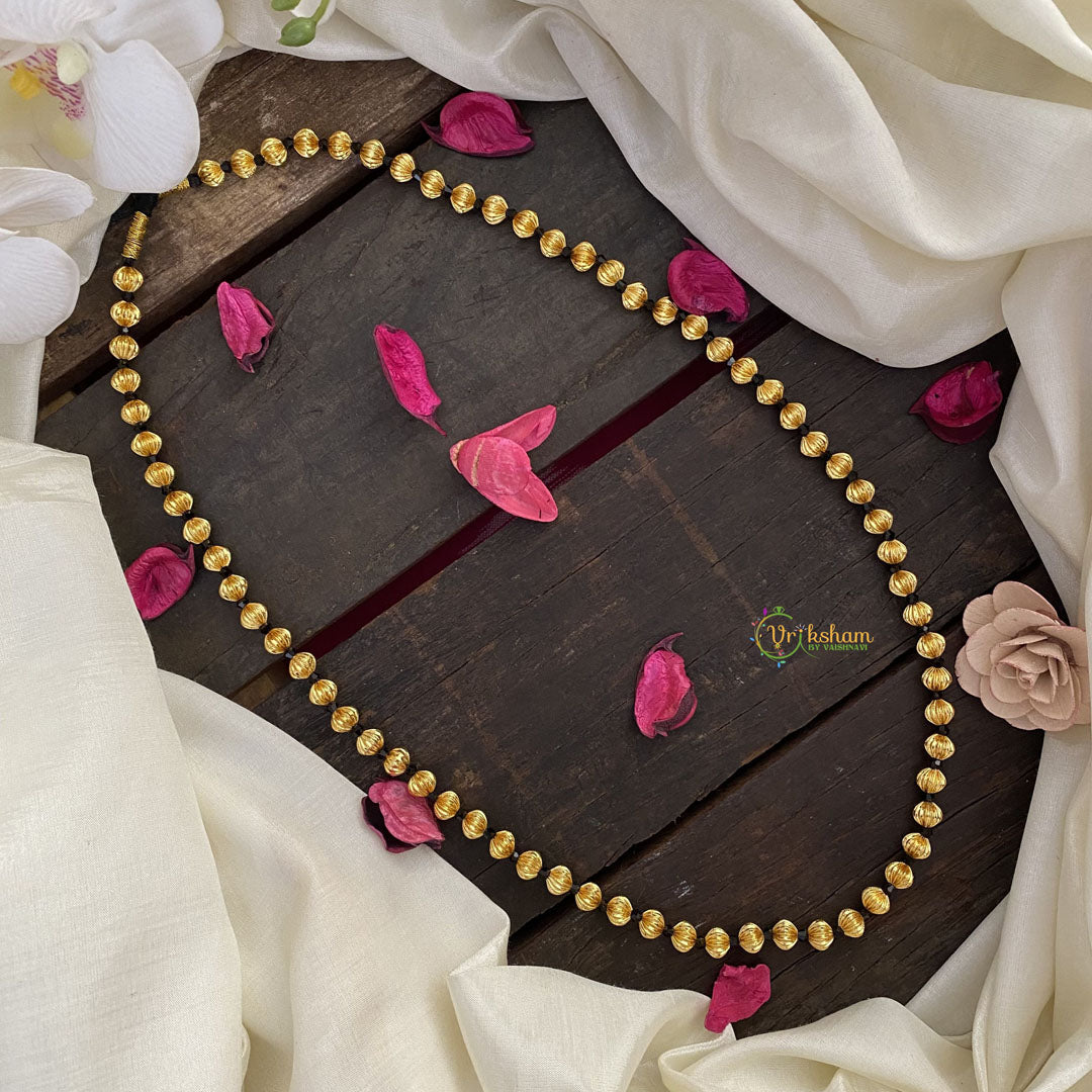 Elevate your style with our Vriksham Gold Look Alike Beaded Neckpiece. Crafted with intricate beads and a sleek black rope, this long-sized neckpiece exudes luxury and sophistication. Enhance any outfit with this tasteful and exclusive accessory.