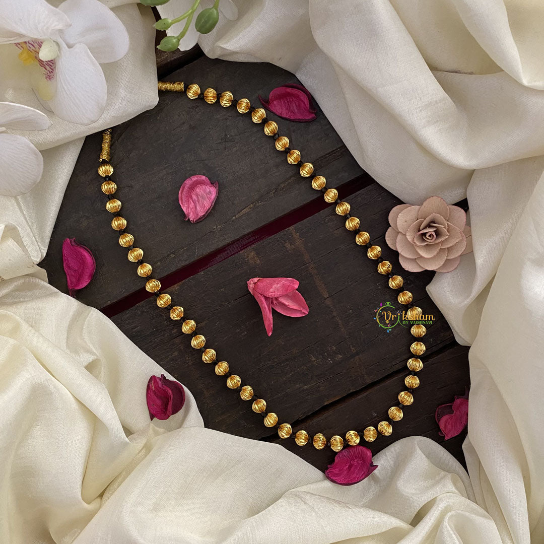 Elevate your style with our Vriksham Gold Look Alike Beaded Neckpiece. Crafted with intricate beads and a sleek black rope, this medium-sized neckpiece exudes luxury and sophistication. Enhance any outfit with this tasteful and exclusive accessory.