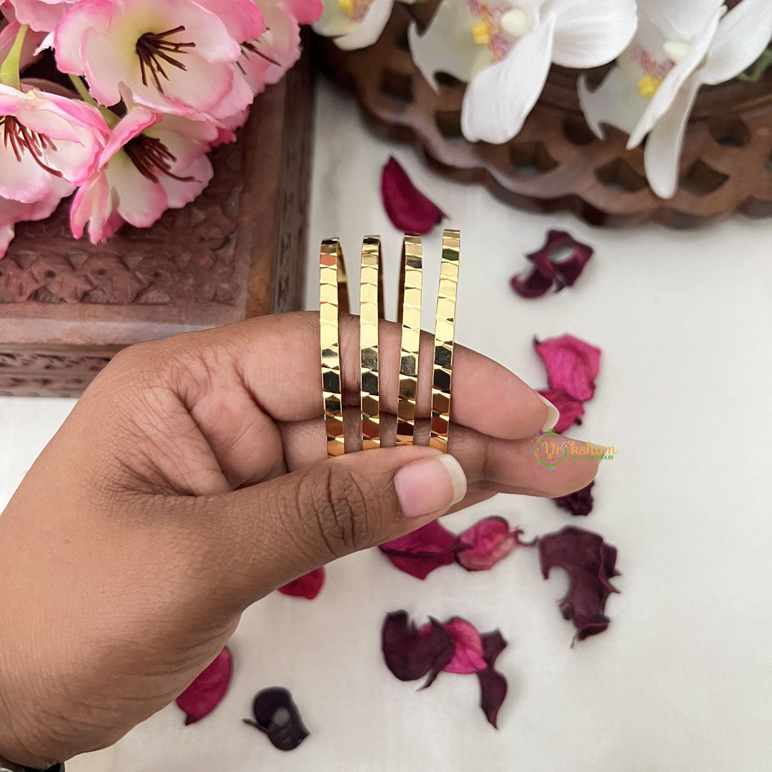 Elevate your daily wear with our Vriksham Gold Look Alike Bangles. Designed with a stylish square design, these bangles exude elegance and sophistication. With their premium gold-like finish, they are perfect for everyday wear, adding a touch of luxury to any outfit. Enhance your style with these exclusive bangles.