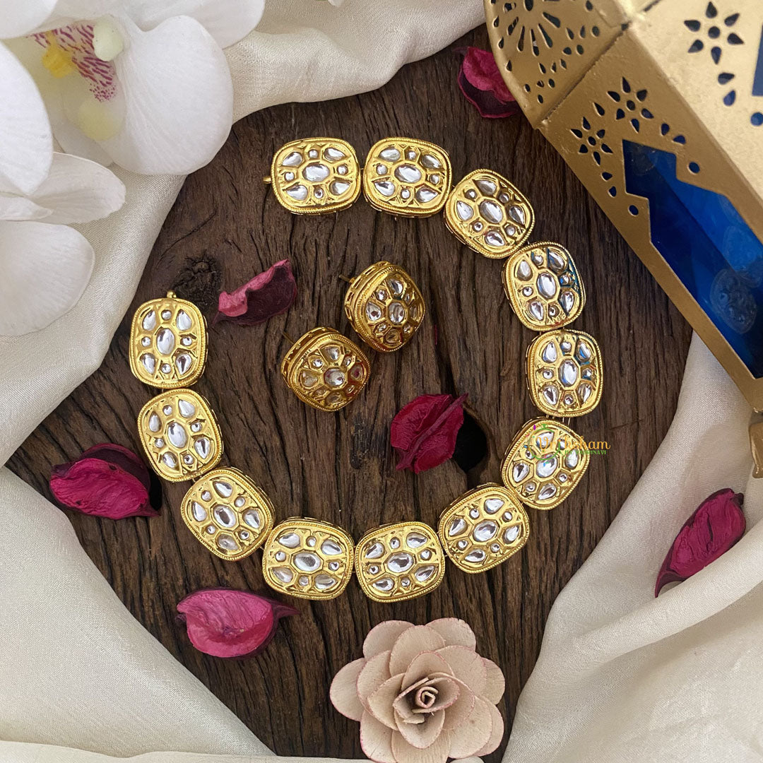 Elevate your style with our Vriksham Gold Look Alike Kundan Neckpiece. This elegant piece features intricate kundan work that resembles real gold, bringing a touch of luxury to any outfit. With its versatile design and premium quality, this necklace is perfect for adding a statement to your wardrobe.