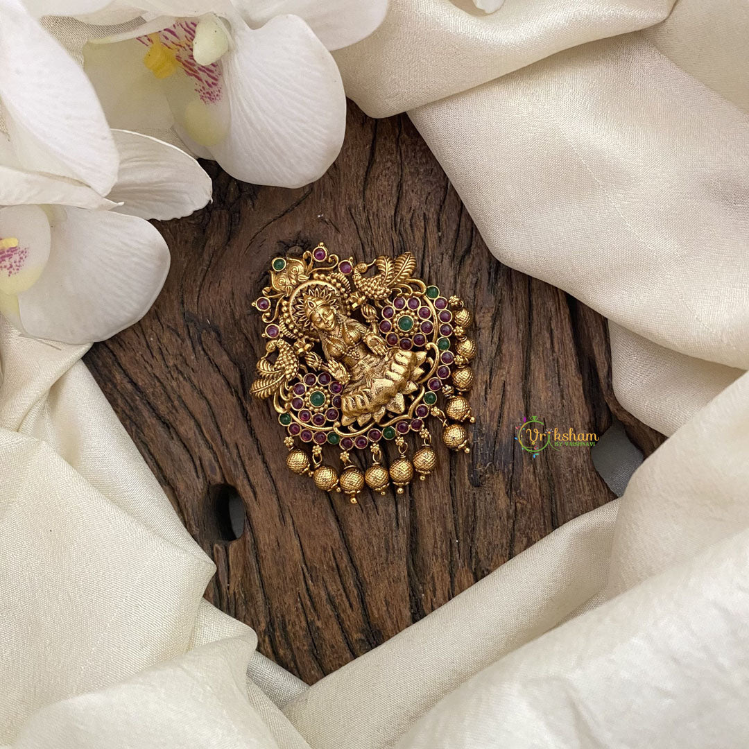 Indulge in luxury with our Vriksham Gold Look Alike Lakshmi Bun Billai-Jada Billai-Gold Bead. Crafted with elegance, this hair accessory adds a touch of opulence to any hairstyle. Adorn yourself with the beauty of Lakshmi and the power of gold, all in one stunning piece. Enhance your look today.