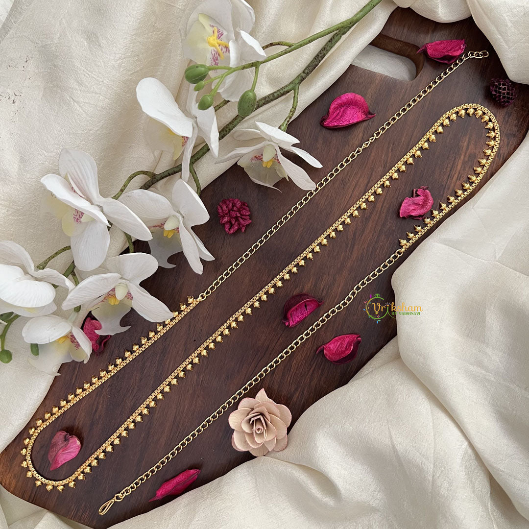 Introducing our Vriksham Gold Look Alike Leaf Thin Hip Chain - a luxurious accessory that adds a touch of sophistication to any outfit. Crafted with intricate leaf detailing, this gold-tone hip chain exudes elegance and timeless style. Elevate your look with this exquisite piece today.