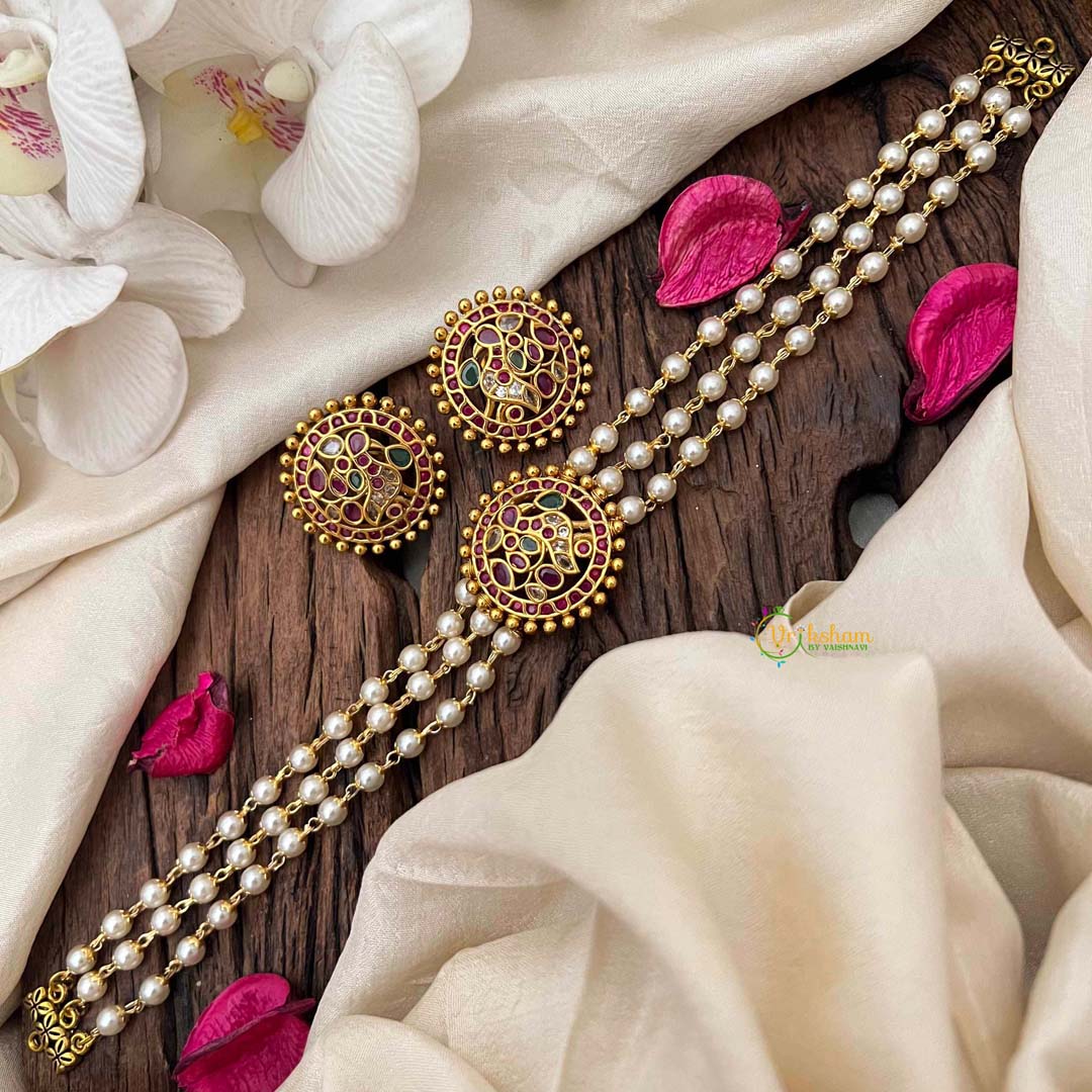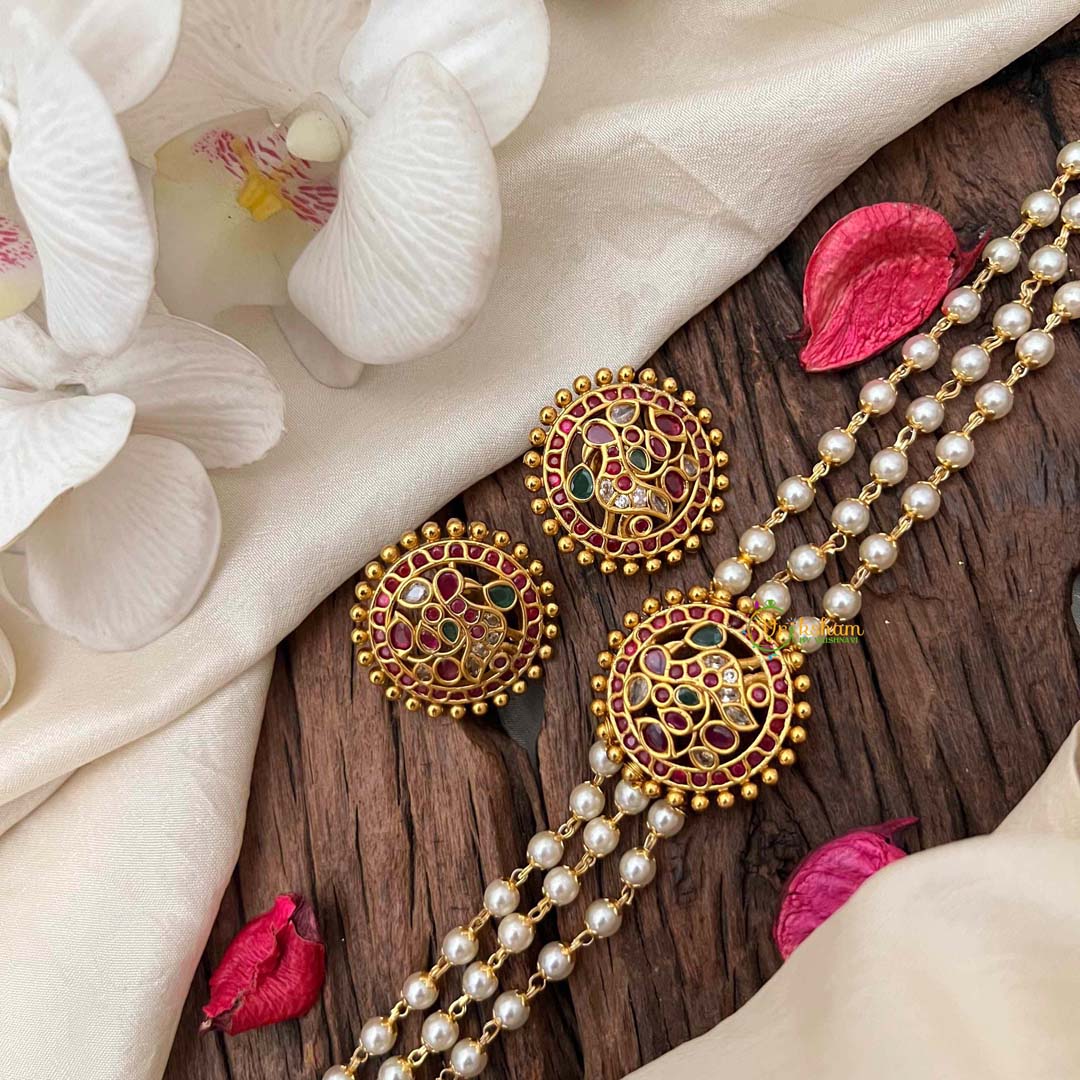 Make a graceful statement with this high-neck choker, featuring an ornate round peacock motif rendered in rich red, emerald green, and pristine white tones. The gold-look finish provides an affordable alternative to precious metals while maintaining an air of refined luxury. Pearls frame the design, adding luminous elegance and softness to the bold peacock centerpiece. This piece celebrates traditional artistry with contemporary appeal, perfect for festive occasions, weddings, or anyone seeking to infuse their collection with cultural sophistication. The elevated neckline flatters and elongates, making it an ideal choice for those who appreciate statement jewelry with timeless charm.