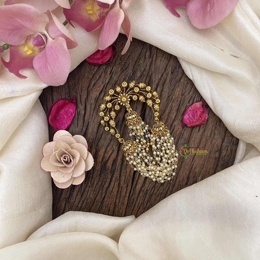 Elevate your look with our Vriksham Gold Look Alike Premium Pearls Layer Single Jada Billai. These exquisite pearls add a touch of luxury and sophistication to any hairstyle. The perfect accessory for a fancy event or a night out on the town. Upgrade to our premium pearls today.