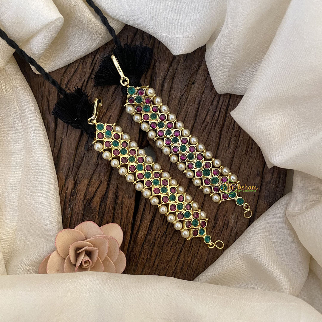 Indulge in the luxurious feel of our Vriksham Gold Look Alike Red Kemp Maatil. Featuring intricate details and a striking red green kemp design, this piece exudes elegance and sophistication. With a premium look and feel, it is the perfect addition to your collection. Elevate your style and make a statement with this exclusive maatil.