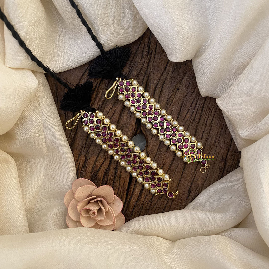 Indulge in the luxurious feel of our Vriksham Gold Look Alike Red Kemp Maatil. Featuring intricate details and a striking red kemp design, this piece exudes elegance and sophistication. With a premium look and feel, it is the perfect addition to your collection. Elevate your style and make a statement with this exclusive maatil.