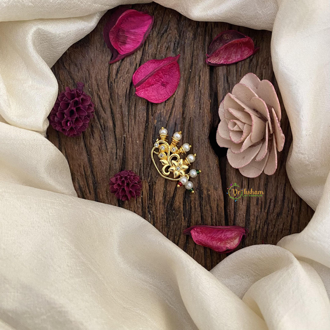 Vriksham Gold Look Alike White AD Stone Nath / Nose pin-Flower-Pearl-G15890