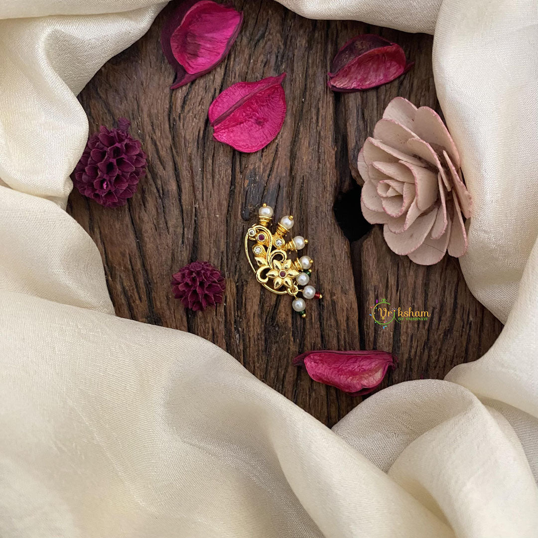 Vriksham Gold Look Alike White Red AD Stone Nath / Nose pin-Flower-Pearl-G15891