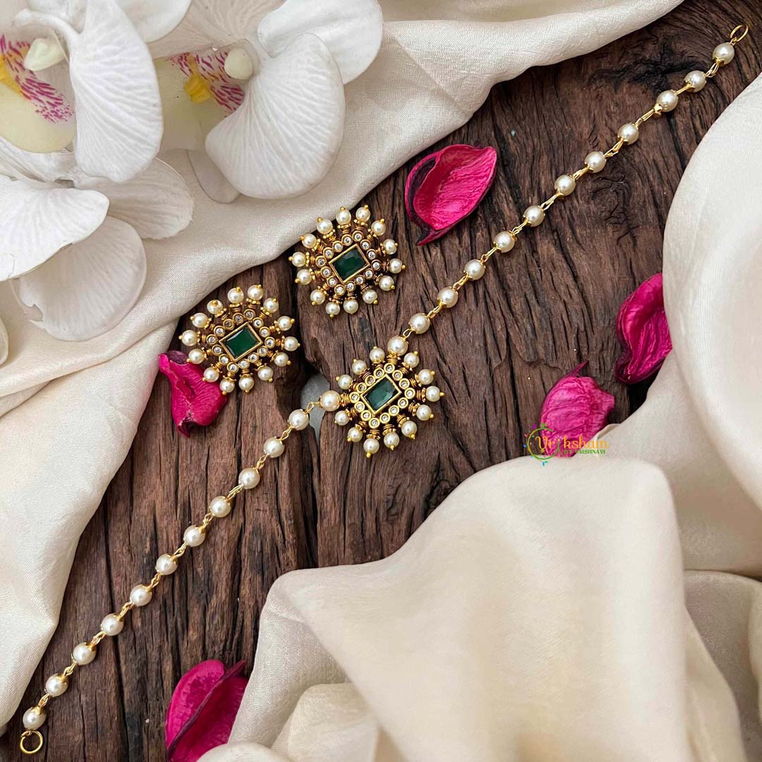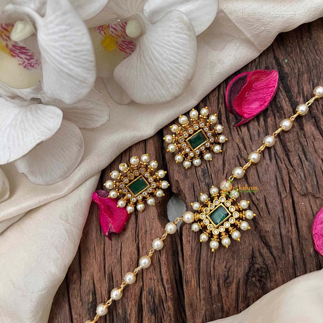 Add a touch of elegance to your ensemble with the Vriksham Gold Look Alike Floral Addigai Neckpiece. Featuring a beautiful floral design in a mix of red and green, this short neckpiece adds a pop of color to any outfit. Made from high-quality materials, it exudes luxury and sophistication.