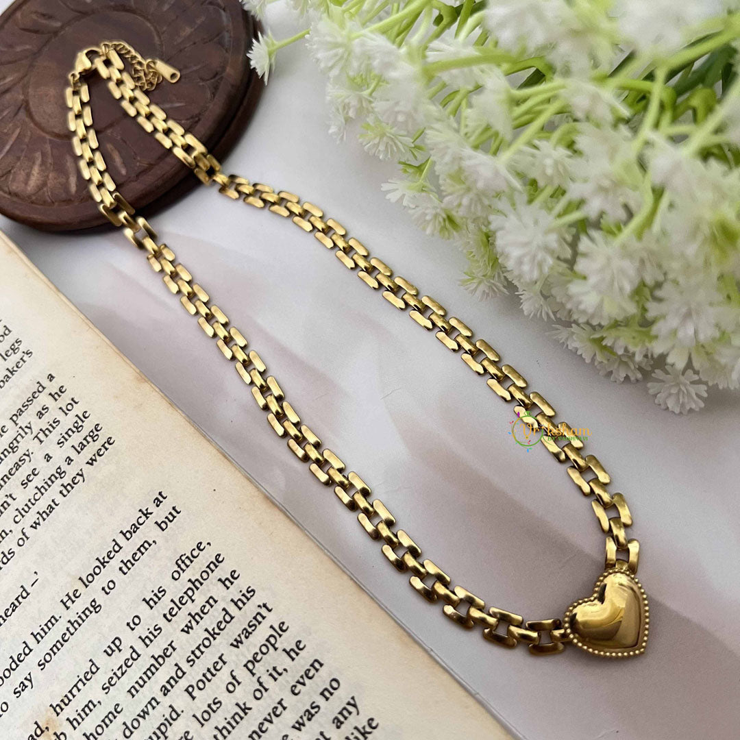 Embrace timeless romance with this exquisite gold-plated heart and dock-style necklace, a harmonious blend of sentiment and nautical charm. The dual-motif pendant—featuring a delicate heart paired with a distinctive dock design—creates a compelling narrative of love and wanderlust. Finished in lustrous gold plating with advanced anti-tarnish protection, this piece resists fading and maintains its radiant allure indefinitely. The thoughtfully proportioned chain complements the pendant's refined aesthetic, making this necklace an ideal choice for those who treasure jewelry that speaks to both the heart and the soul.