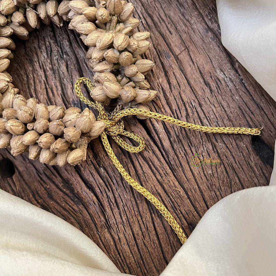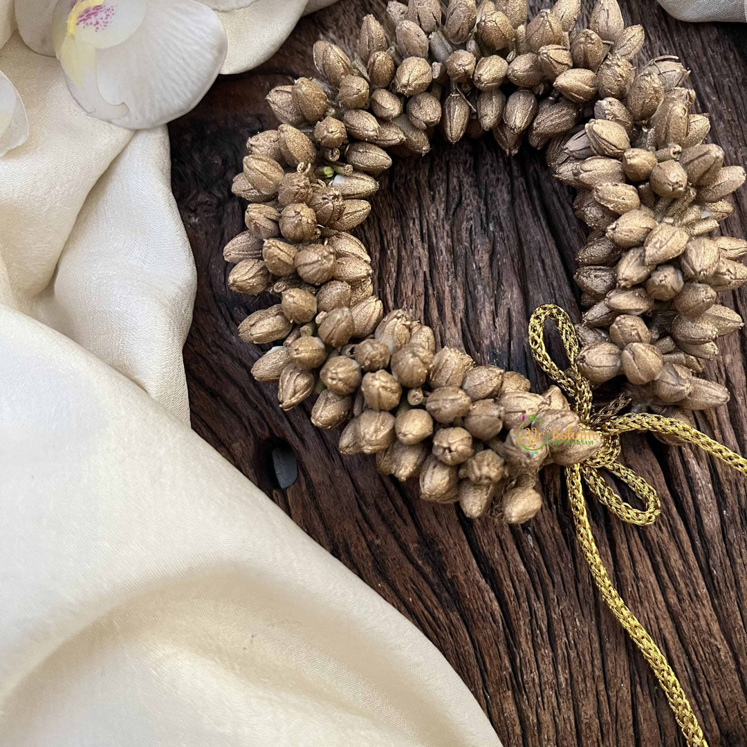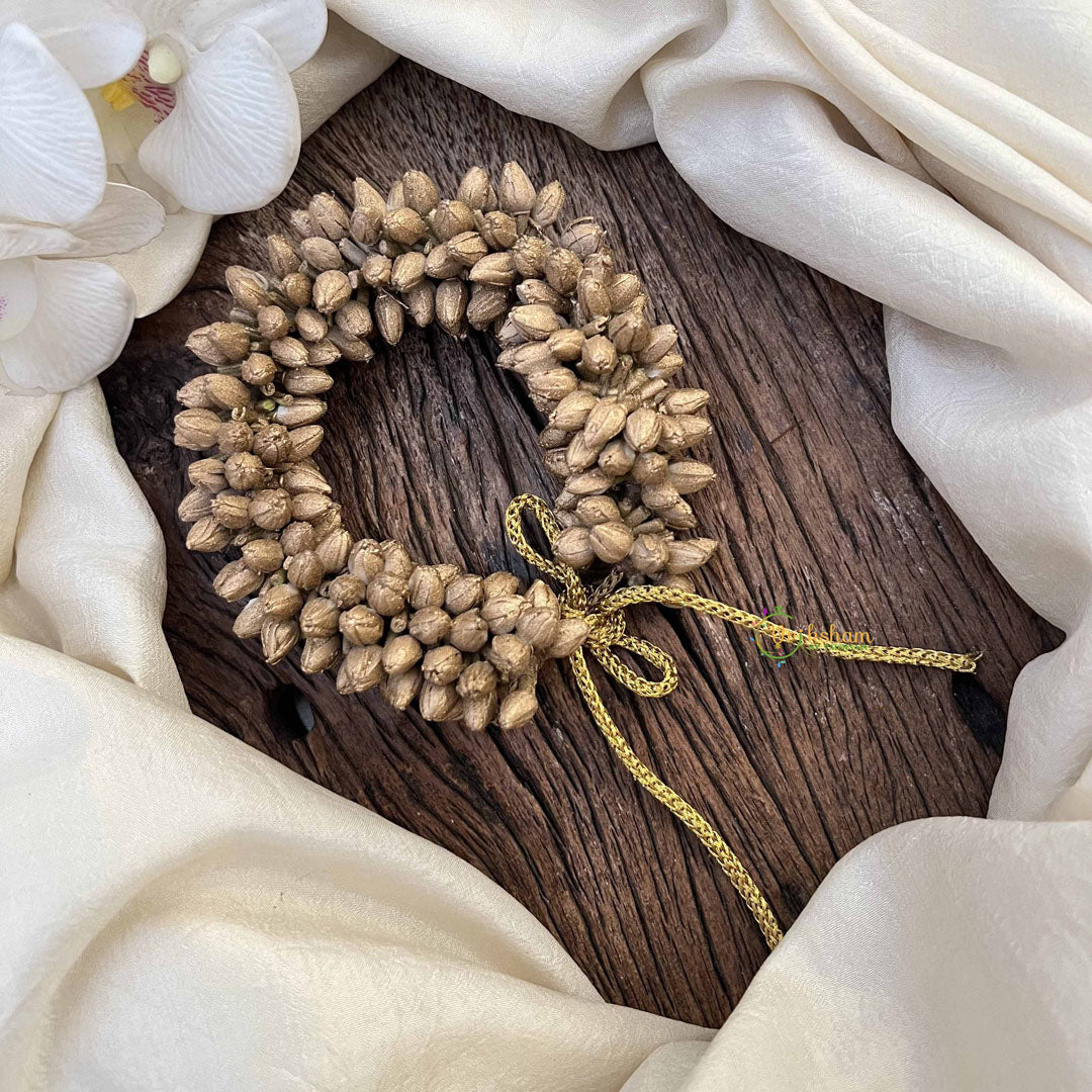 Adorn your bun with our Golden Jasmin Floral Buds Gajra, a luxurious 10-inch accessory that transforms your hairstyle into a statement of refined elegance. Crafted with premium jasmine buds in warm golden tones, this gajra offers a distinctive aesthetic that bridges traditional craftsmanship with contemporary style. The generous length allows for versatile styling options, whether wrapped around an upswept bun or woven through braids. Each bloom releases a subtle, captivating fragrance that lingers gracefully throughout your day. Perfect for weddings, festivals, and special occasions, this accessory embodies the timeless allure of botanical luxury and meticulous artistry.