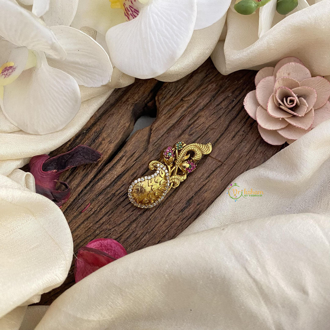 For more such pieces kindly visit, https://vrikshamindia.com/product-category/golden-jewellery/other-accessories/brooches-saree-pins/