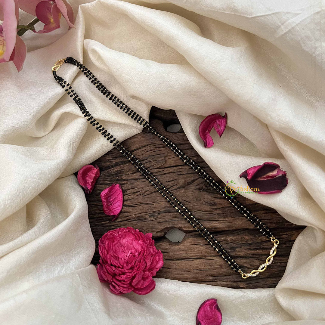 The Vriksham Graceful Wave Luster AD Stone Mangalsutra features an elegant wave-inspired design embellished with radiant AD stones. This piece blends fluid artistry with refined sparkle, creating a sophisticated symbol of grace and commitment that complements both traditional and modern attire.