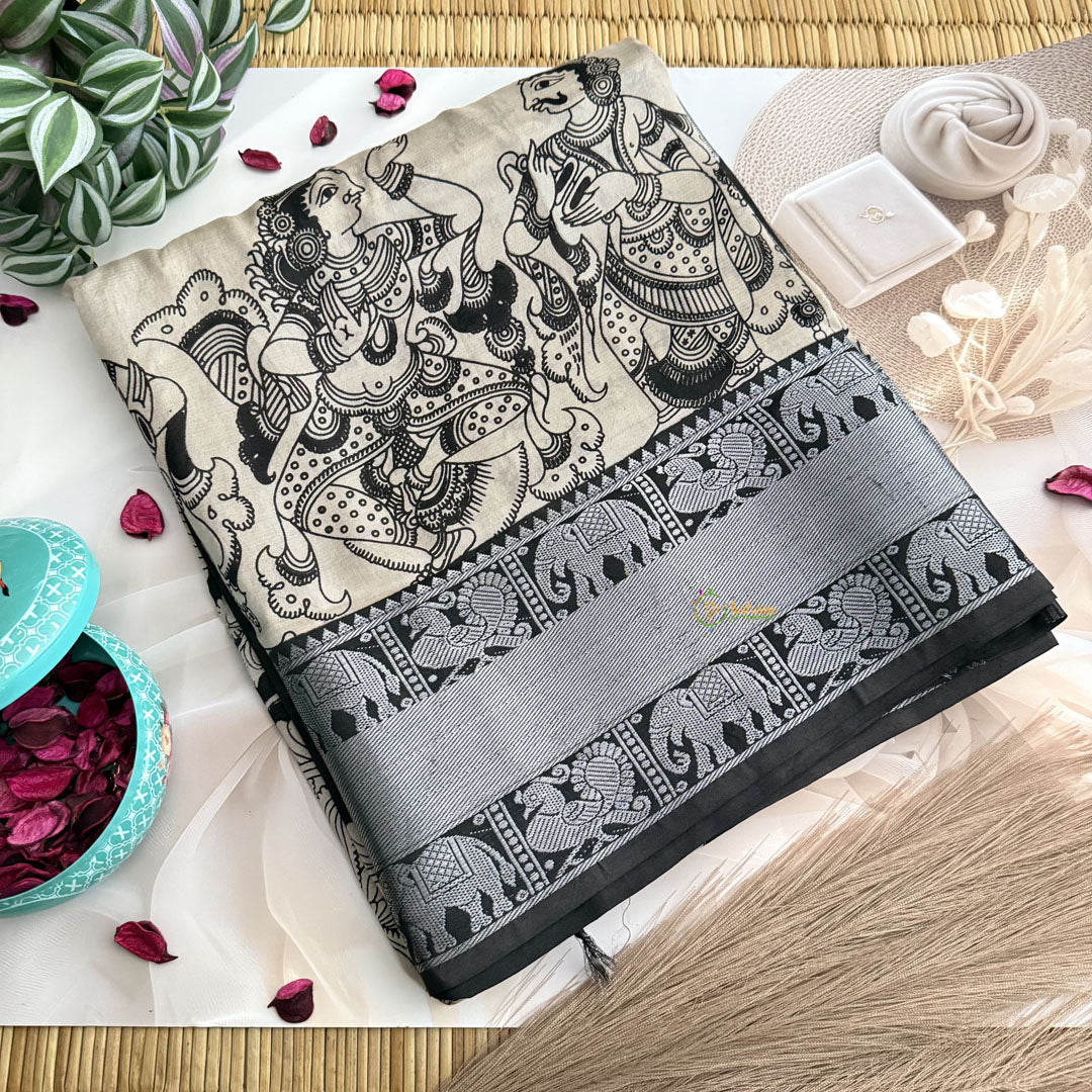 Vriksham Gray Kalamkari Saree With Kanchi Border-VS4681